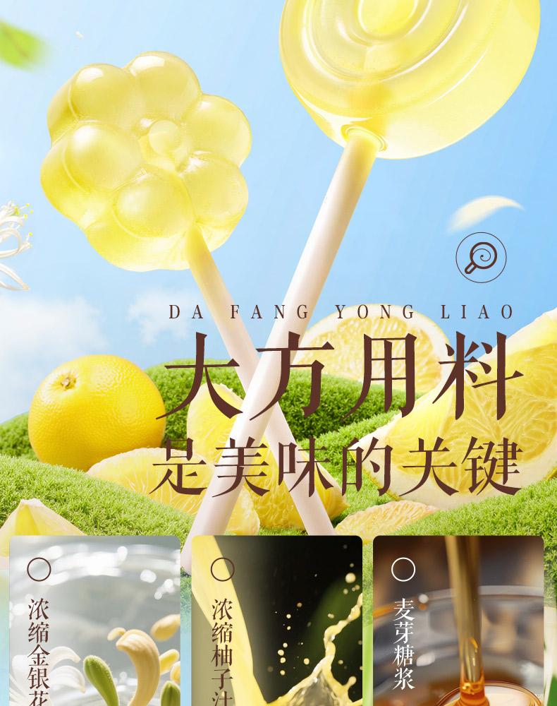 【粉丝专属❗️金银花柚子棒棒糖】金银花与柚子相配,真果子令人满足,跟火气说拜拜,果味酸甜糖果休闲零食L-d