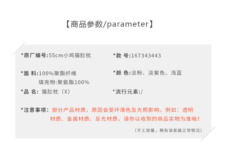 卡通记忆棉55cm小鸡猫肚枕-纪念日百货门店同款167343443
