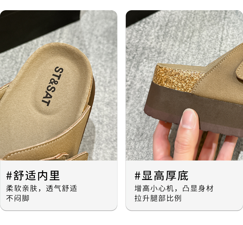 星期六复古金属扣厚底增高勃肯拖SSC21101DK