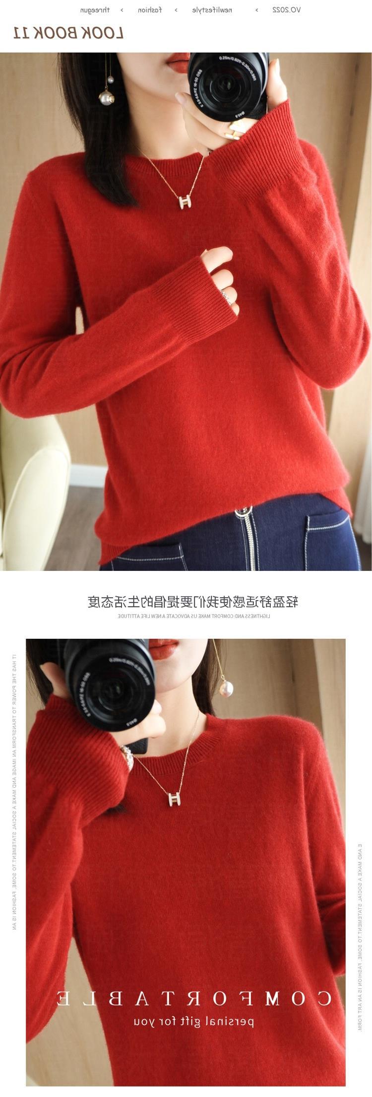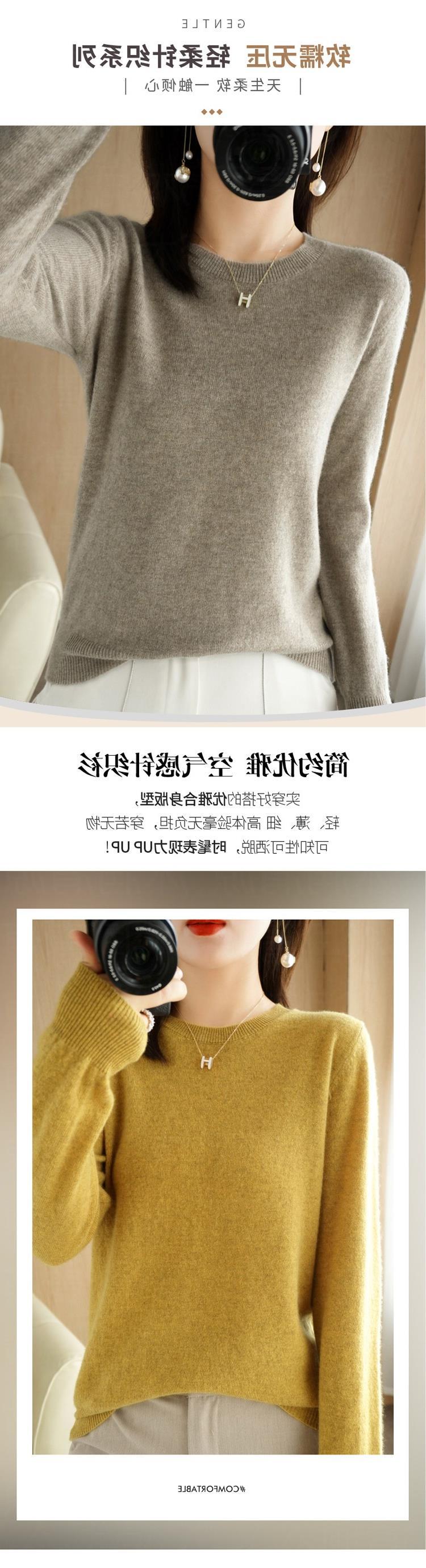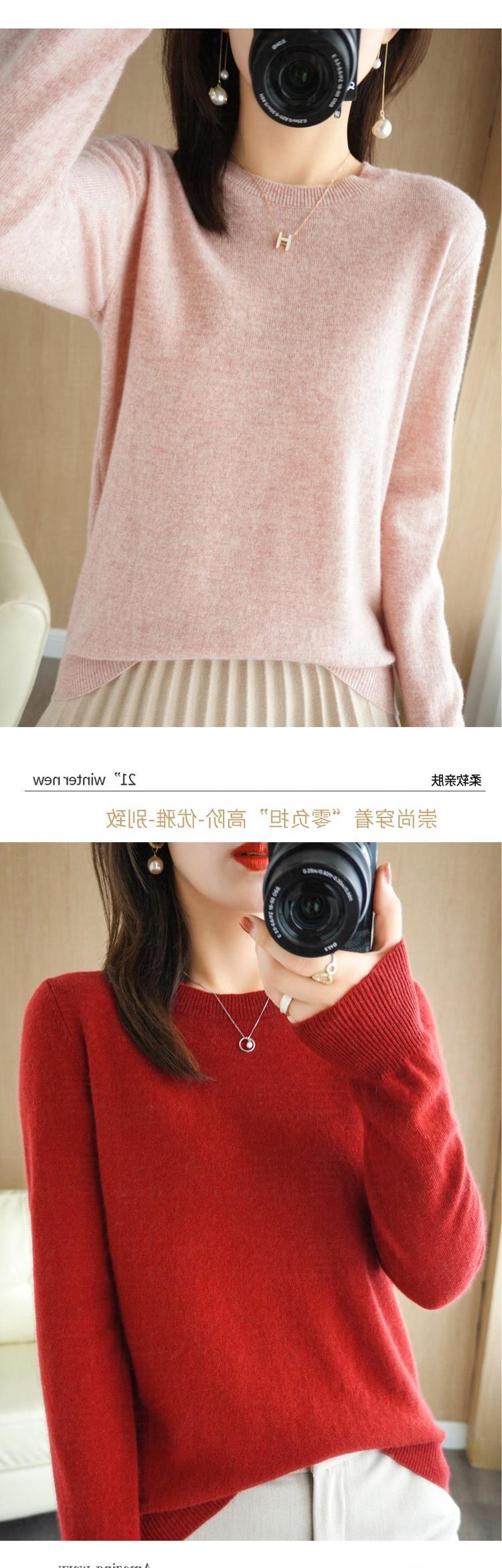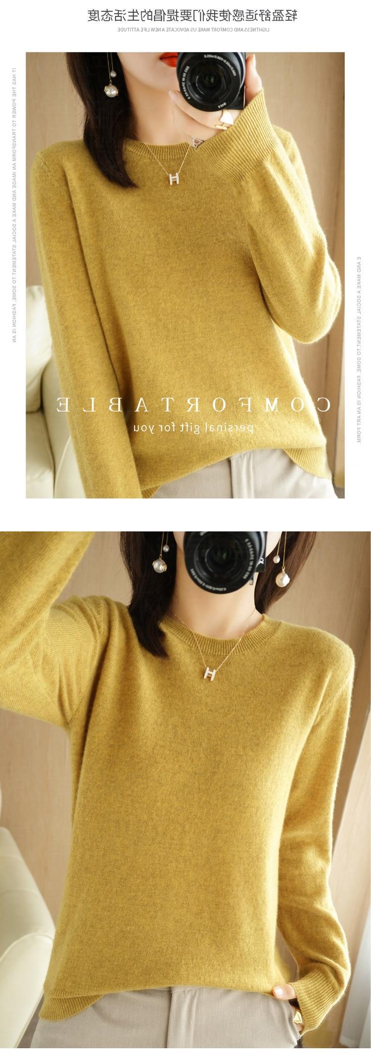 【短款打底衫!轻巧舒适】秋冬新款圆领毛衣女套头针织衫纯色长袖女装薄款内搭短款打底衫。ry