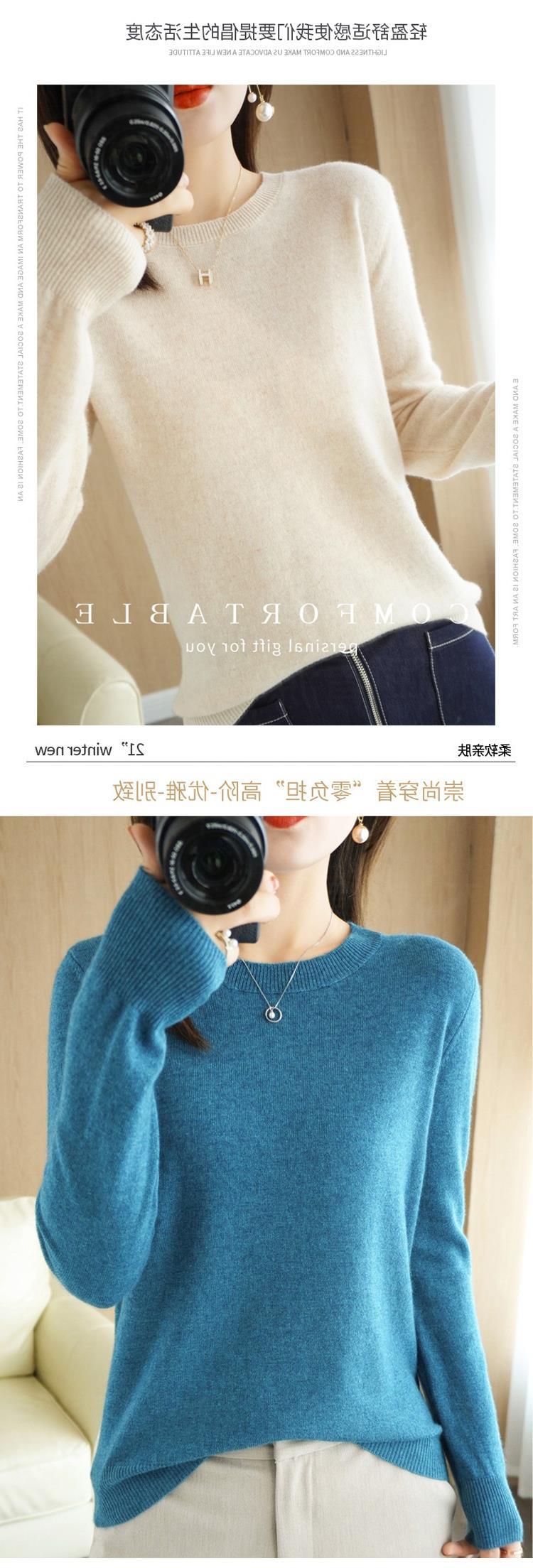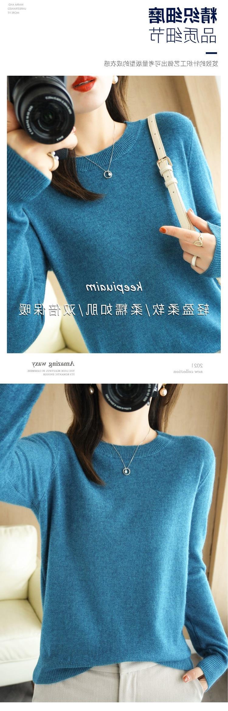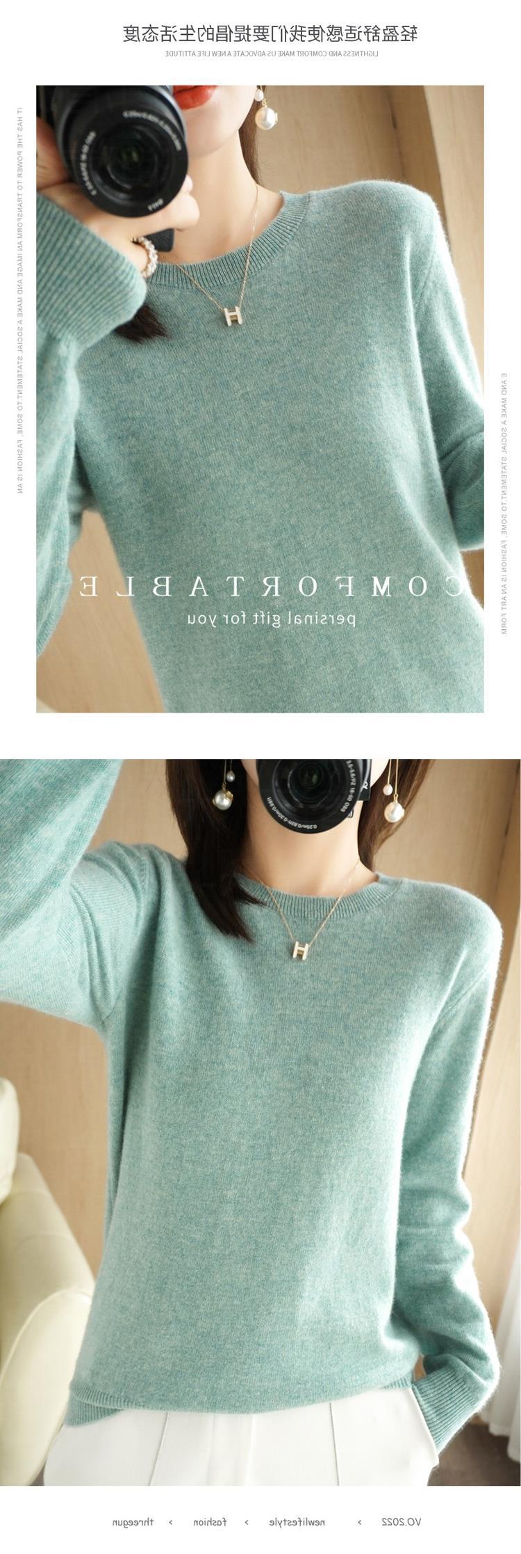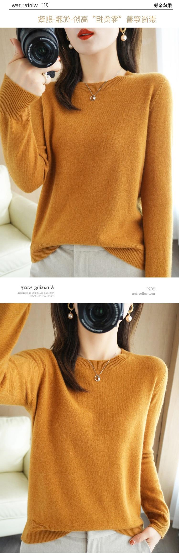 【短款打底衫!轻巧舒适】秋冬新款圆领毛衣女套头针织衫纯色长袖女装薄款内搭短款打底衫。ry