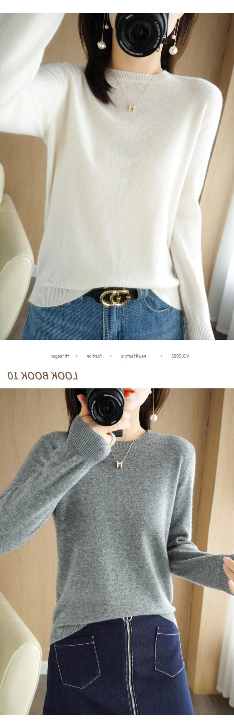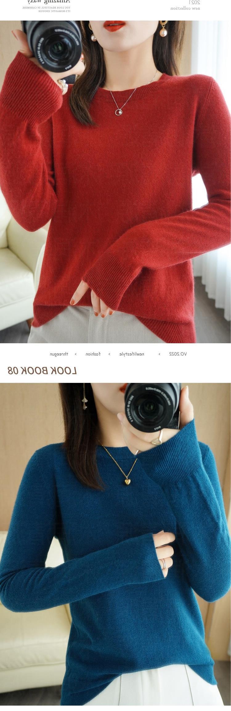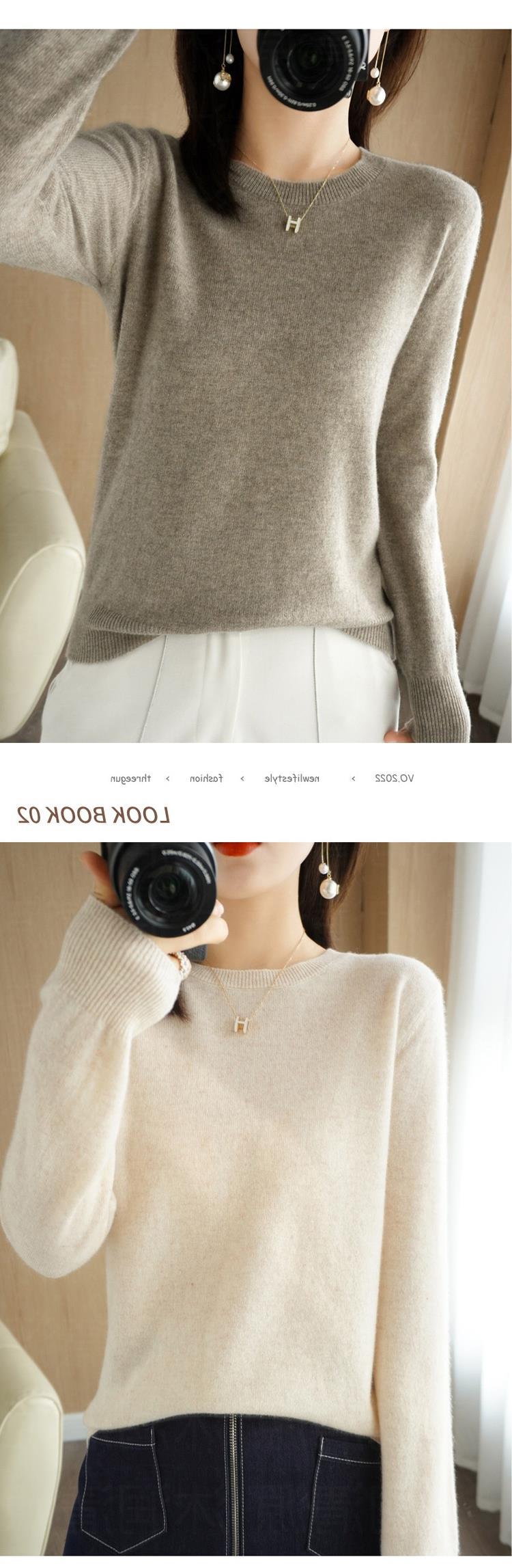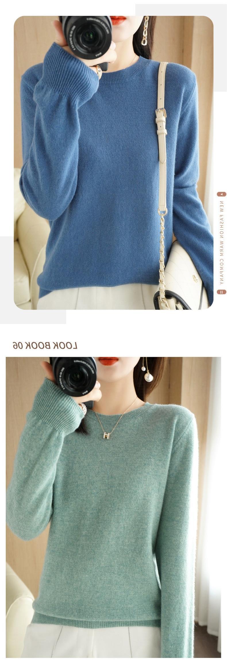 【短款打底衫!轻巧舒适】秋冬新款圆领毛衣女套头针织衫纯色长袖女装薄款内搭短款打底衫。ry