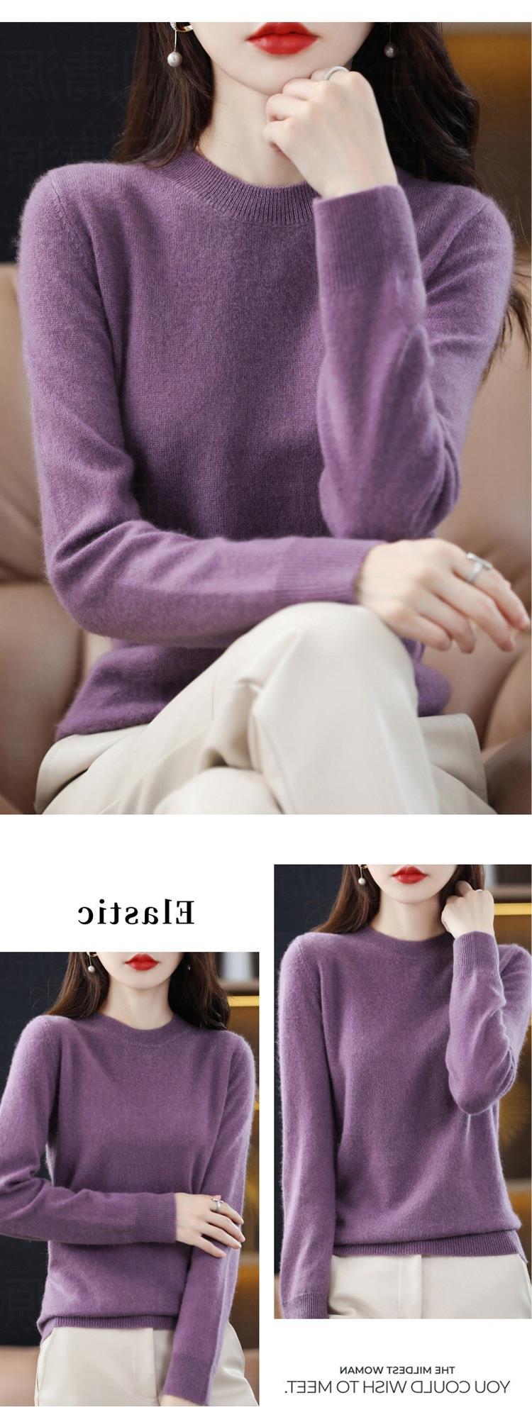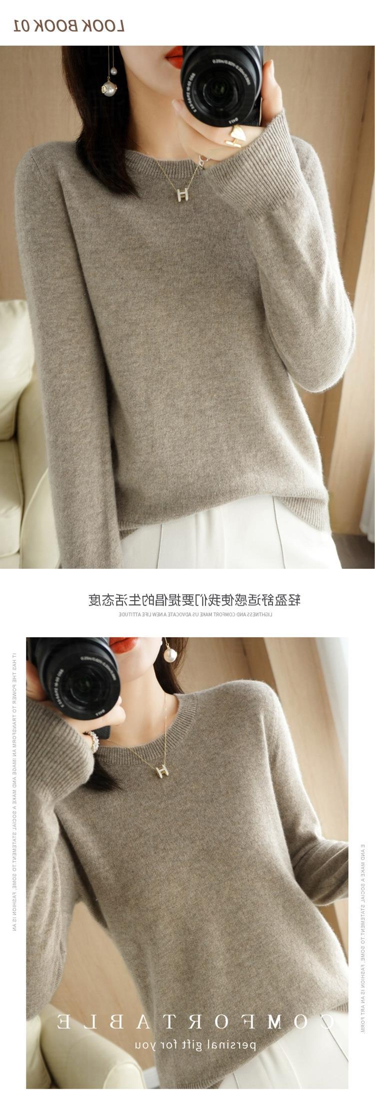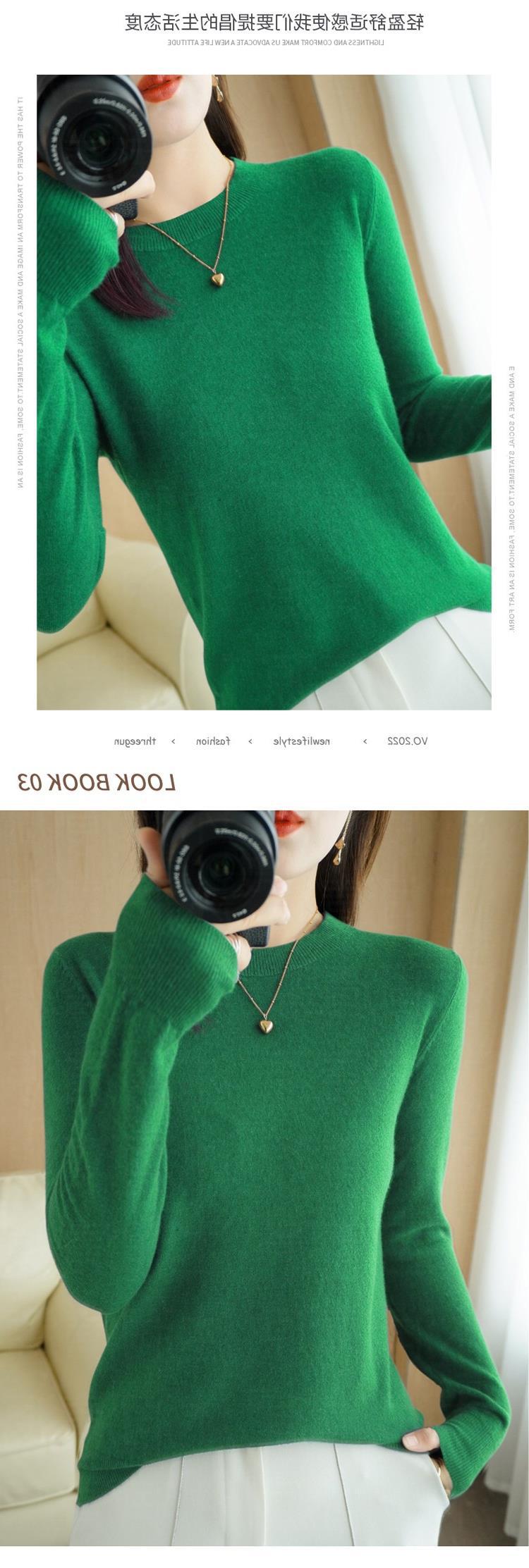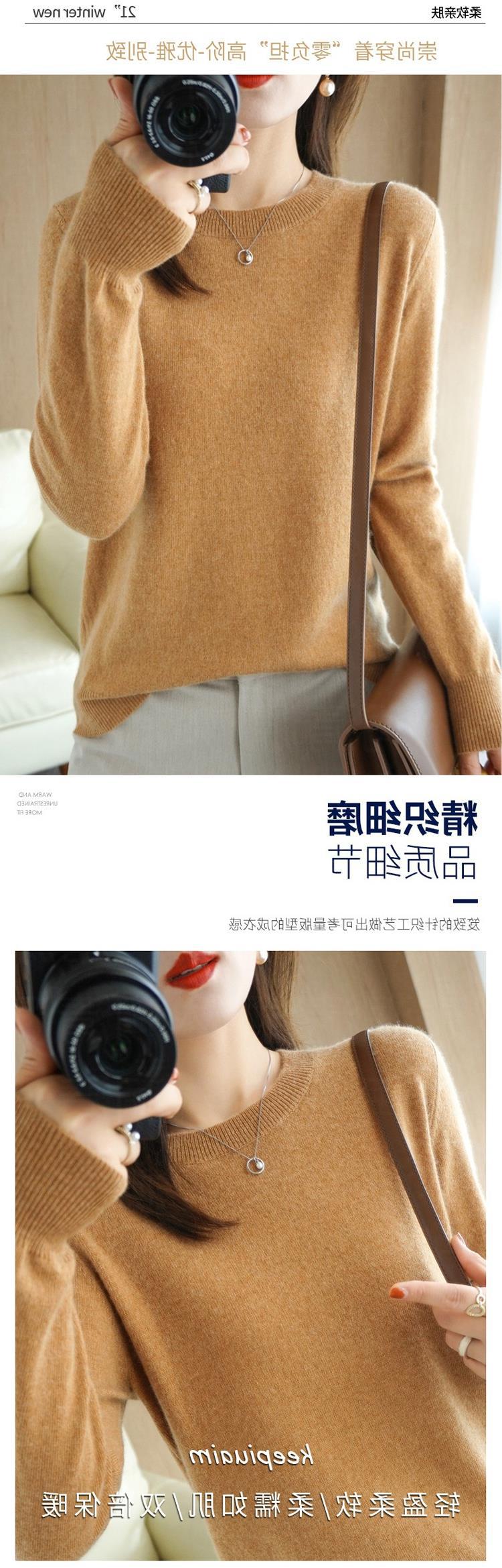 【短款打底衫!轻巧舒适】秋冬新款圆领毛衣女套头针织衫纯色长袖女装薄款内搭短款打底衫。ry