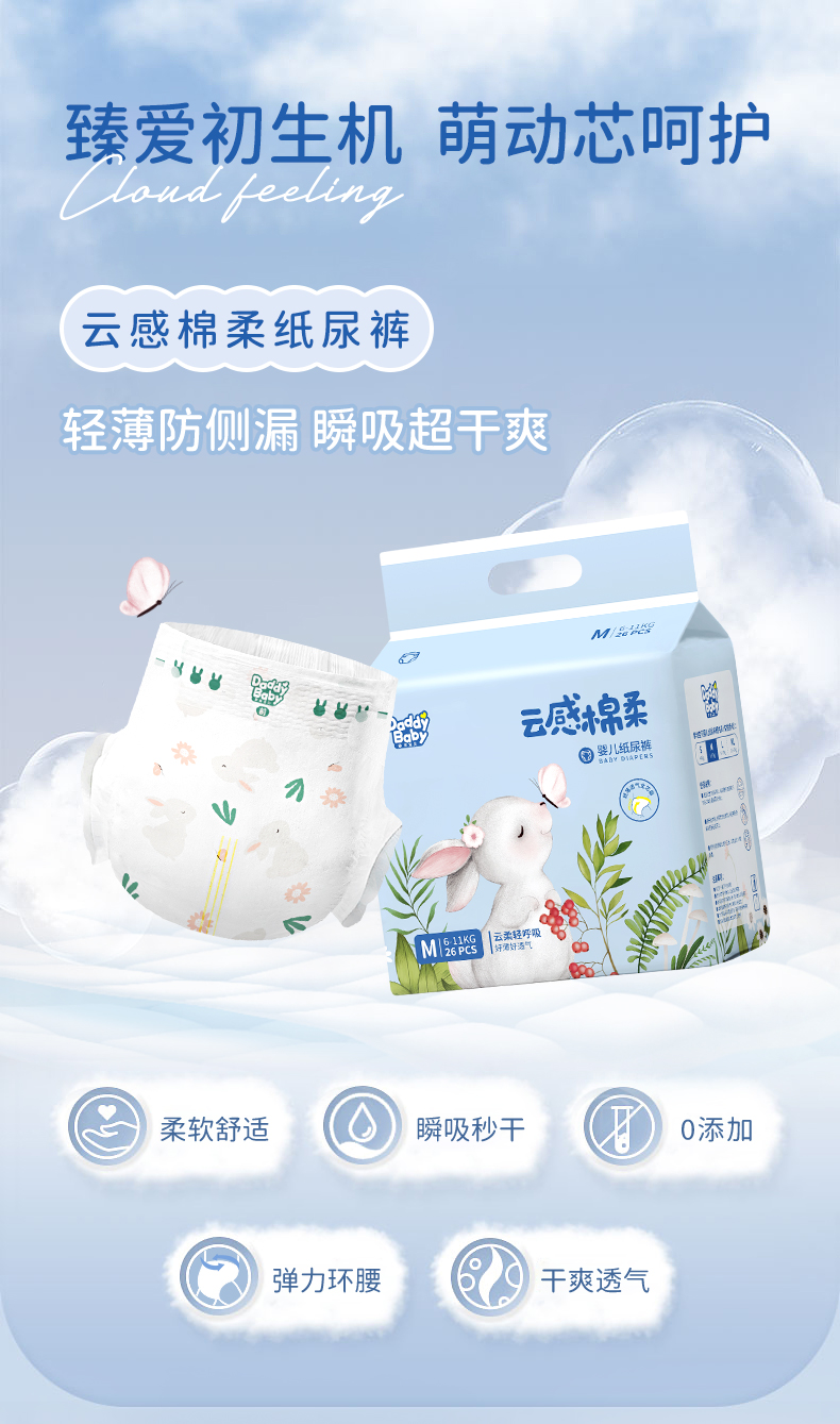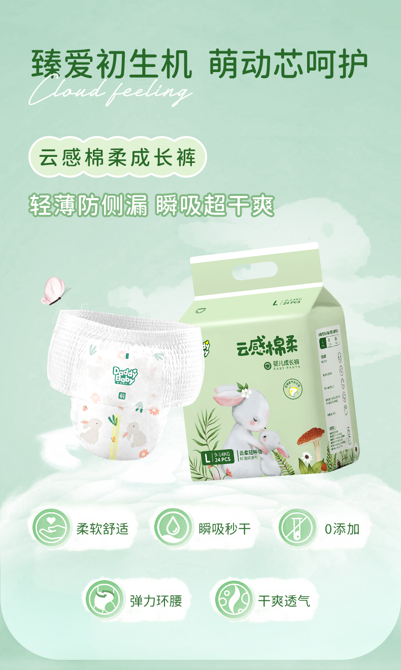 【会员2箱到手49/箱,多件有赠品】爹地宝贝云感棉柔 拉拉裤/纸尿裤,超薄透气.内外双柔.大吸量