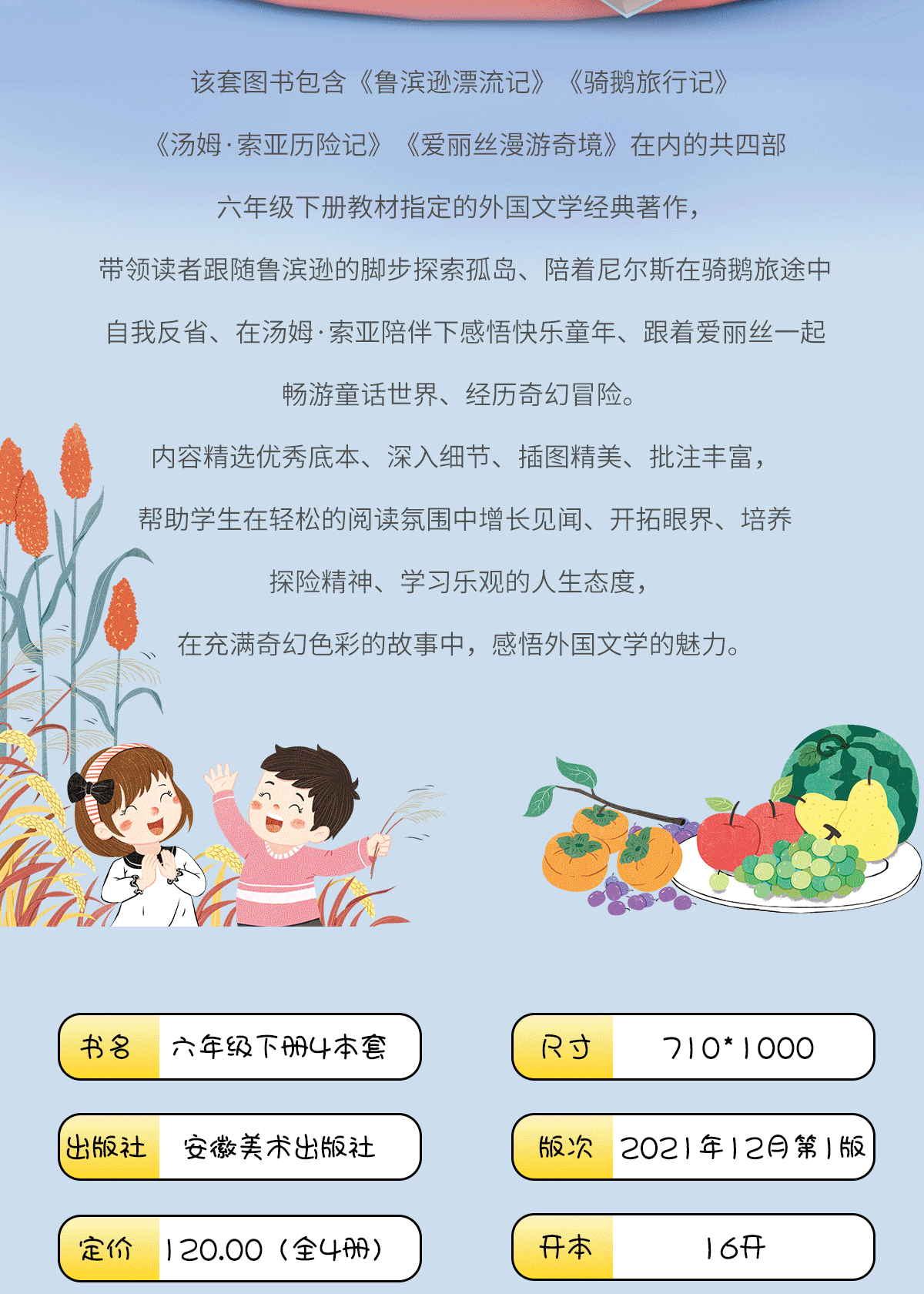 【六年级下册】快乐读书吧(4本套)爱丽丝漫游奇境 鲁滨逊漂流记 骑鹅旅行记 汤姆索亚历险记 小学语文配套名著丛书
