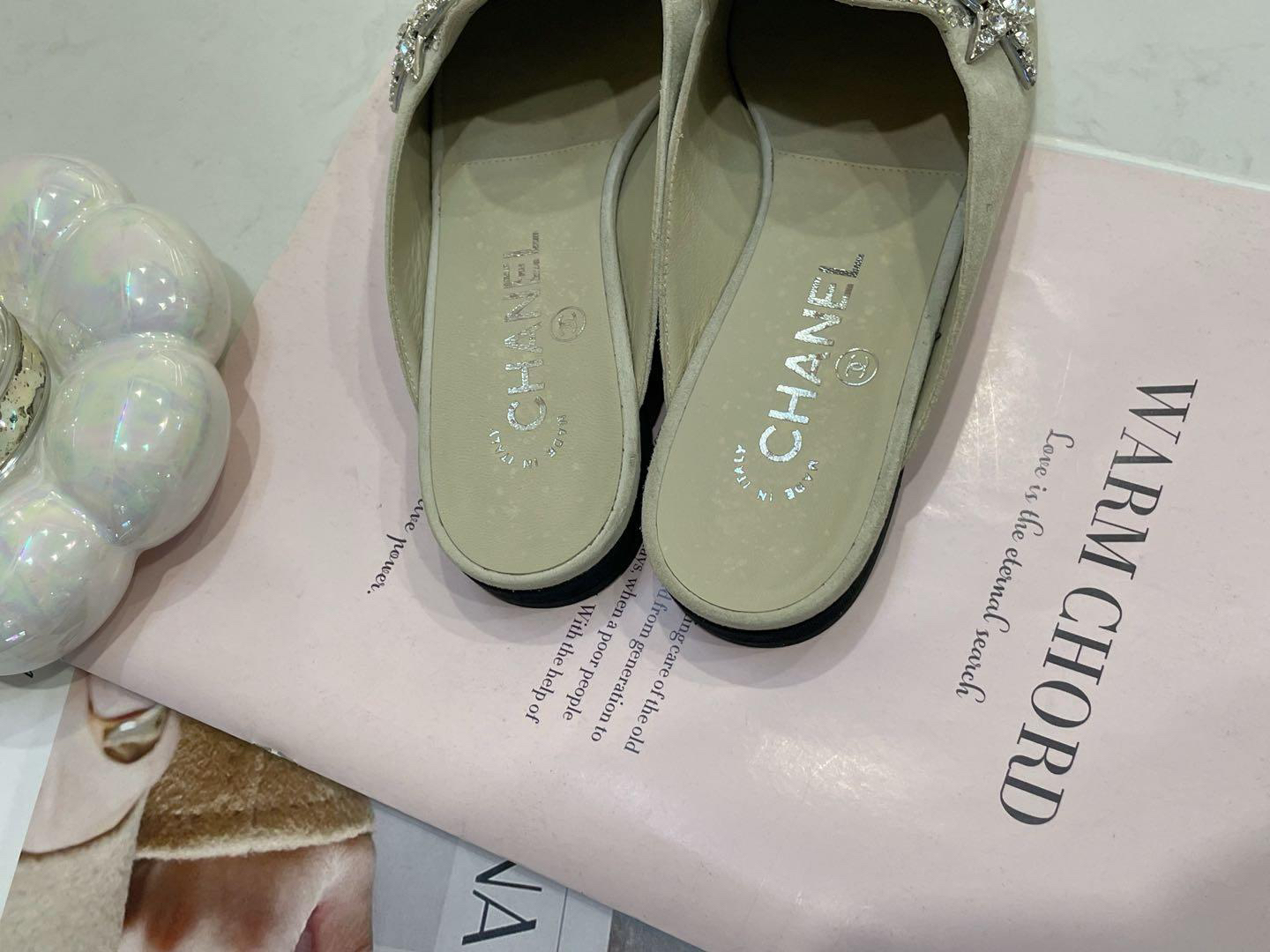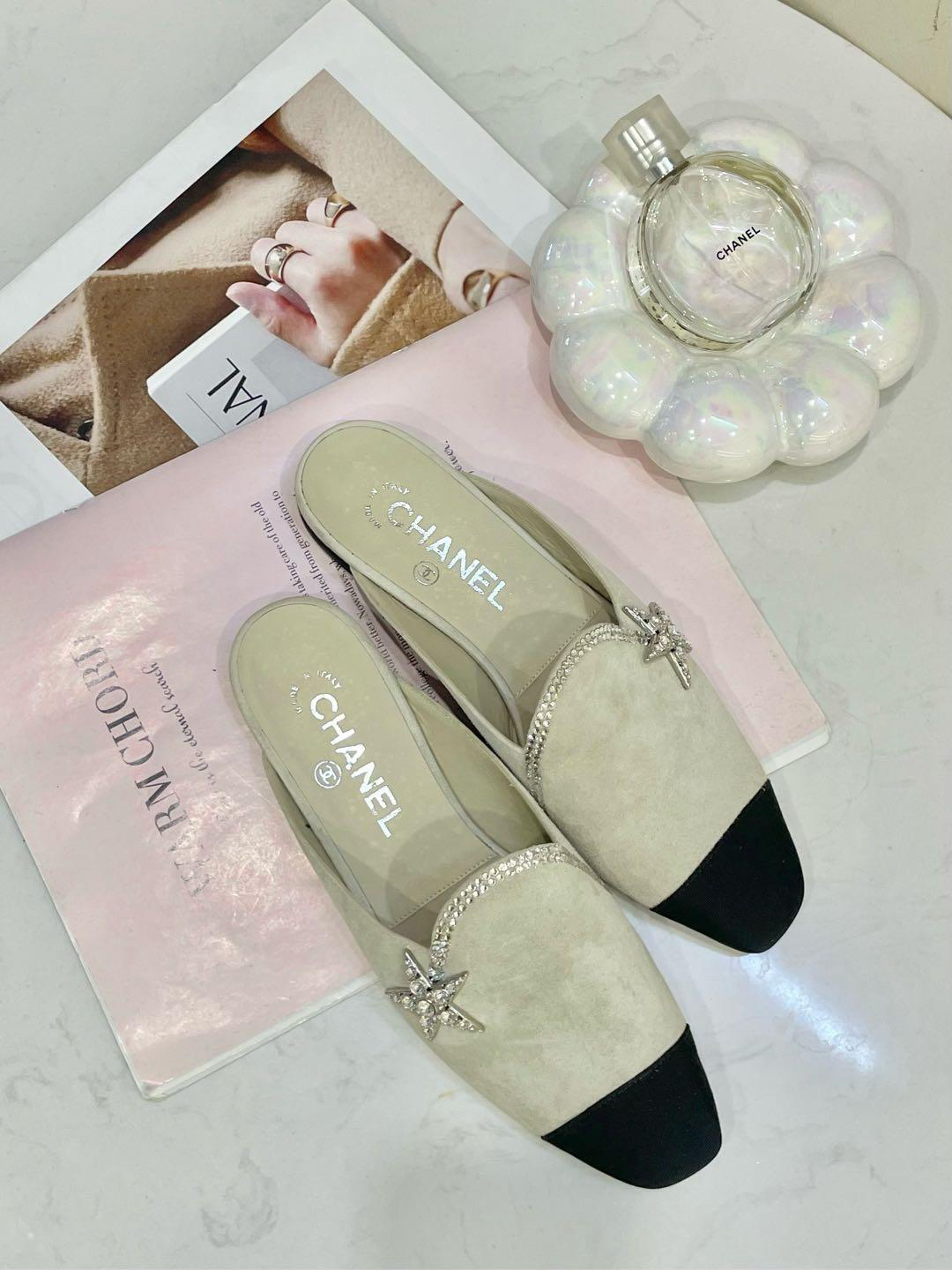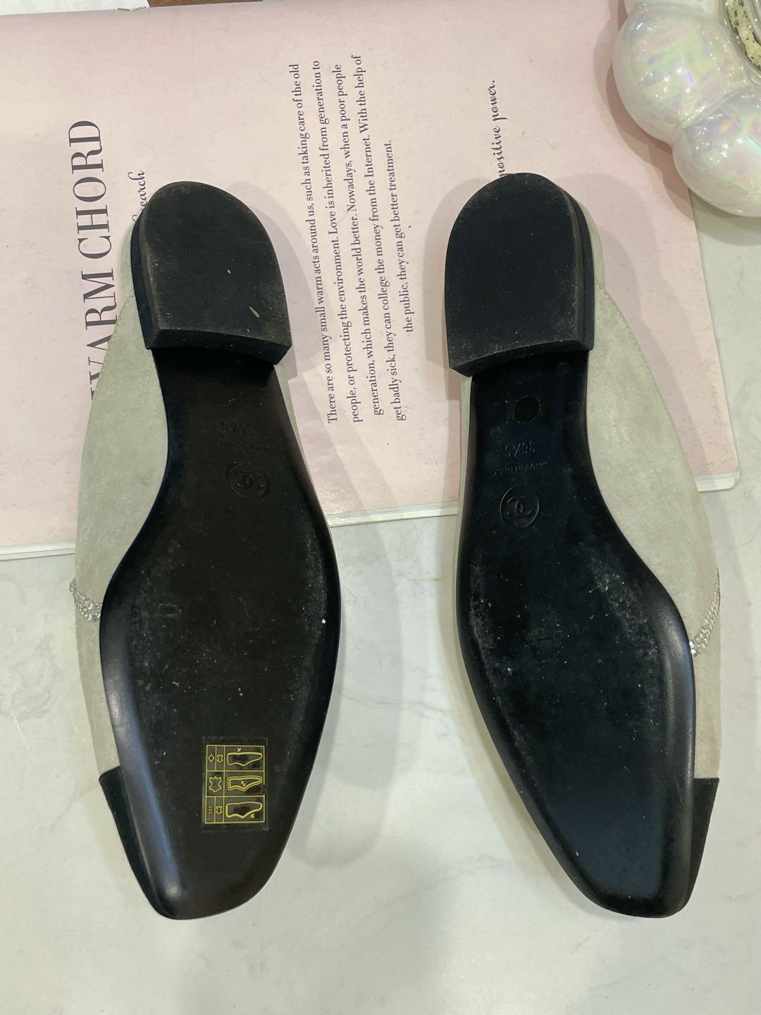 正品二手 Chanel 拼色 麂皮 星星钻扣 半拖鞋 💝95新 36码。底部有正常使用感。上脚精致显脚小 blinblin