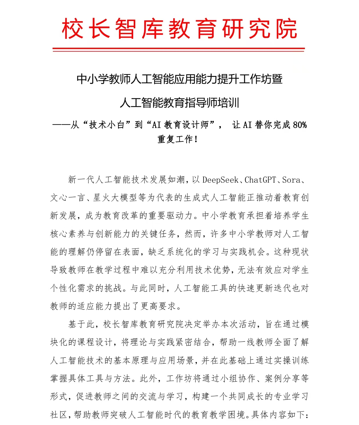 2025中小学教师人工智能应用能力提升工作坊暨人工智能教育指导师培训 ——从“技术小白”到“AI教育设计师”,3天时间, 让AI替你完成80%的重复工作!