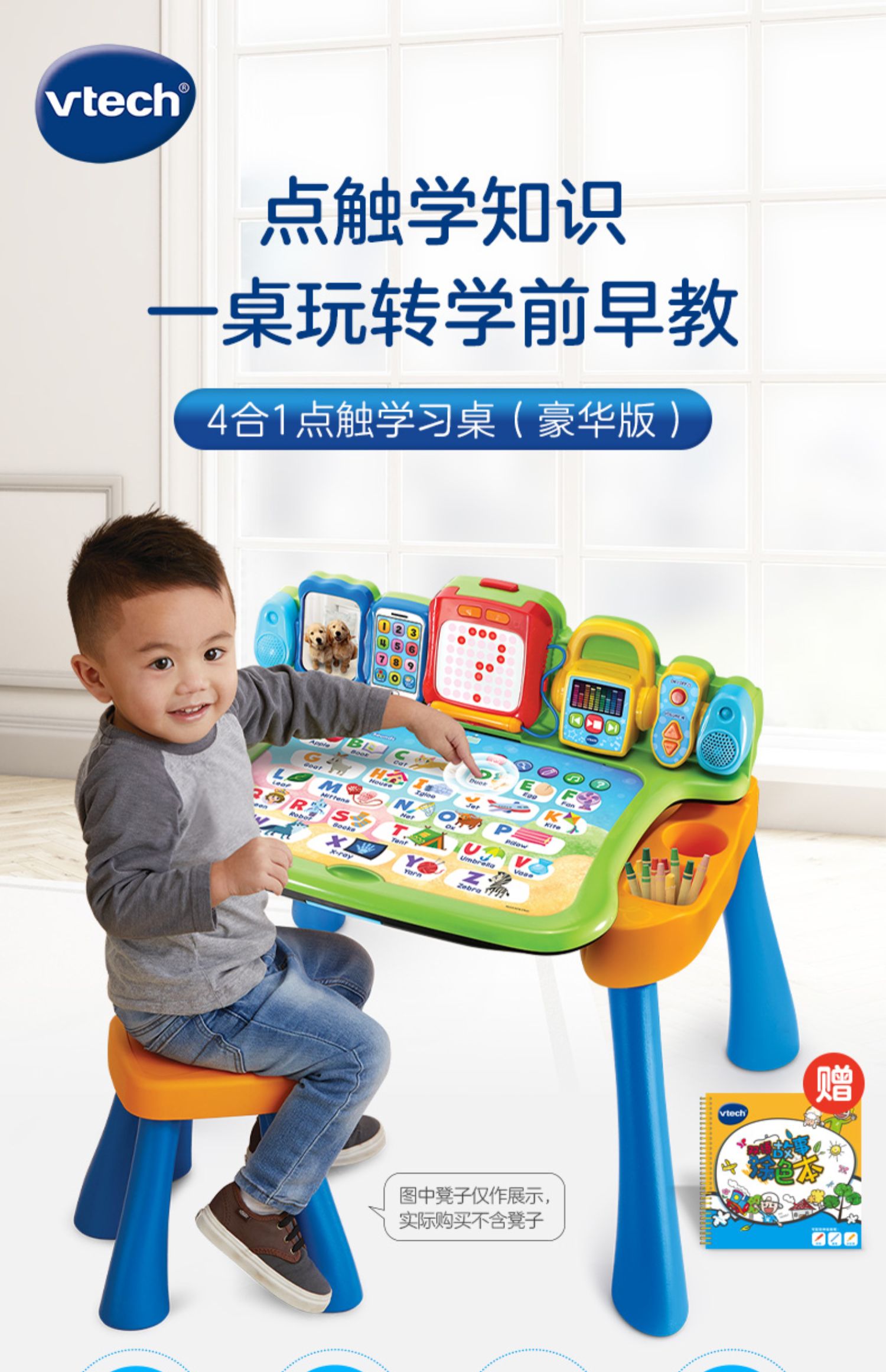 伟易达4合1点触学习桌多功能点读笔英语早教机儿童书2岁玩具
