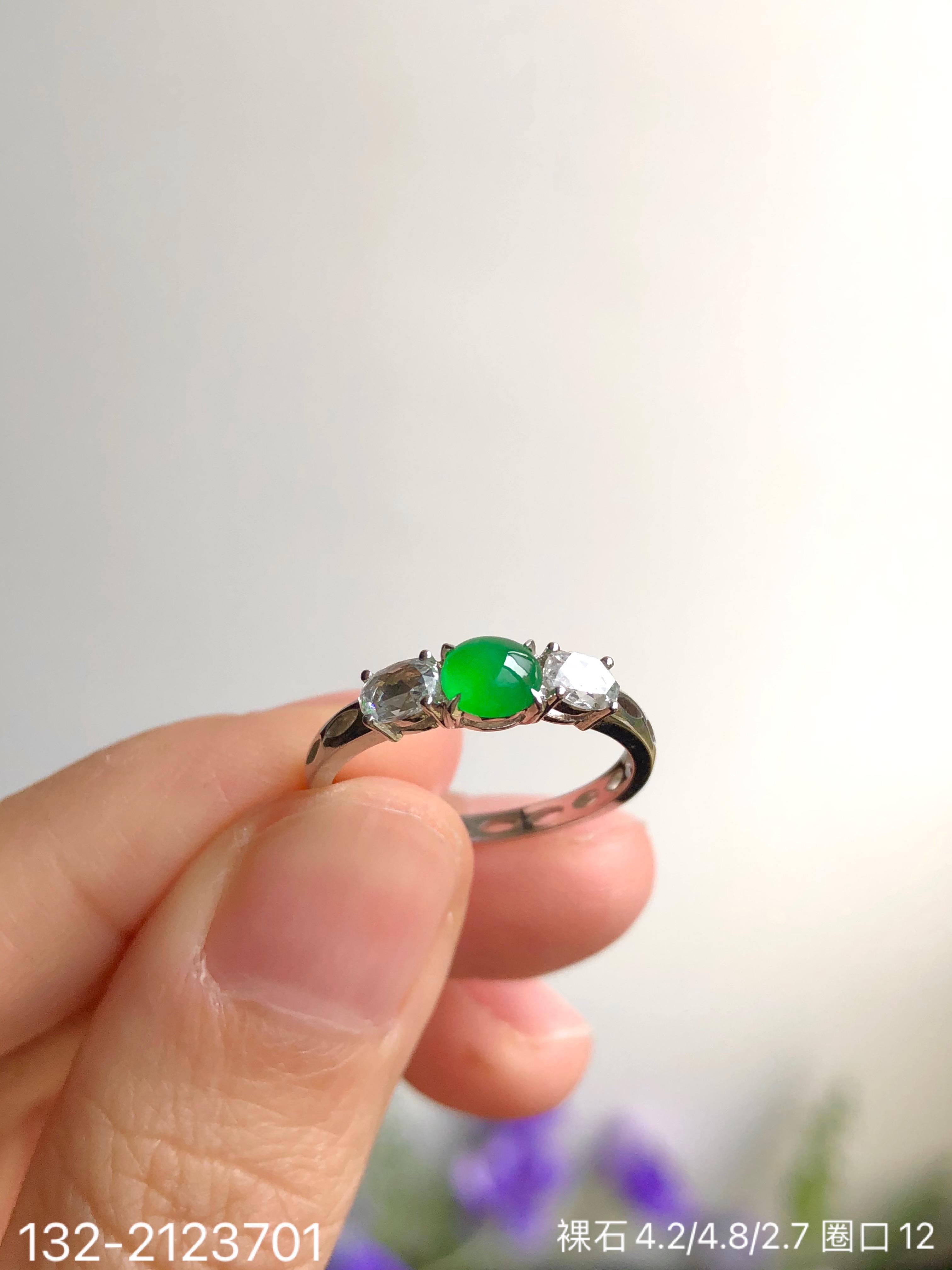 132-2123701,老坑高冰艳绿蛋面戒指,6599