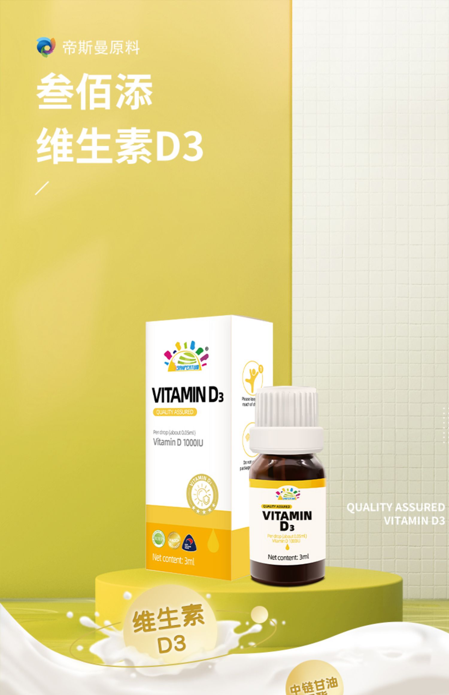 叁佰添维生素D3滴剂儿童成人帝斯曼原料 新西兰原装进口 (每滴含1000单位)3ml瓶装
