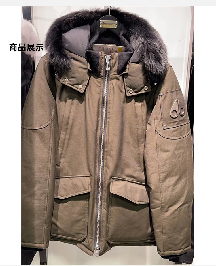 MOOSE KNUCKLES 男士金属驼鹿指关节徽标黑毛领连帽羽绒服 军绿色 MK8507MJ 775