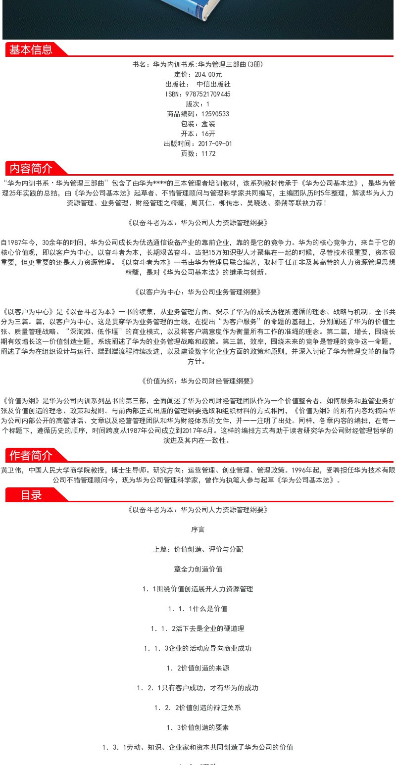 华为内训书系:华为管理三部曲(3册) 黄卫伟 编 以奋斗者为本+以客户为中心+价值为纲 人力资源团队管理行政人事财经