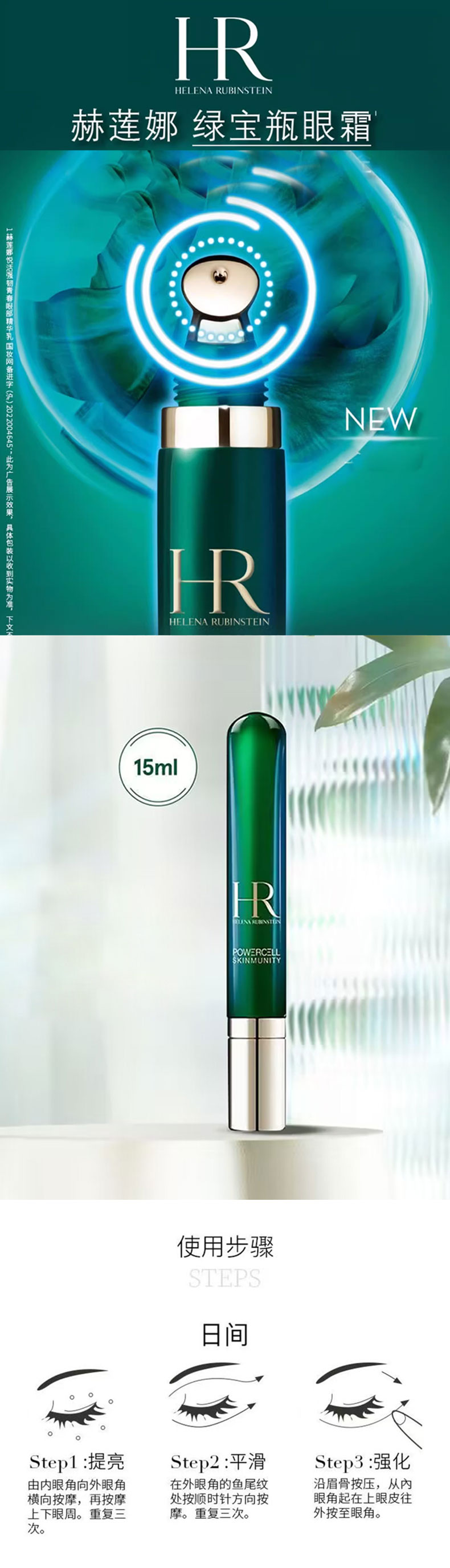 HR赫莲娜绿宝瓶眼霜15ml 正装 +新肌水30ml+绿宝瓶精华10ml