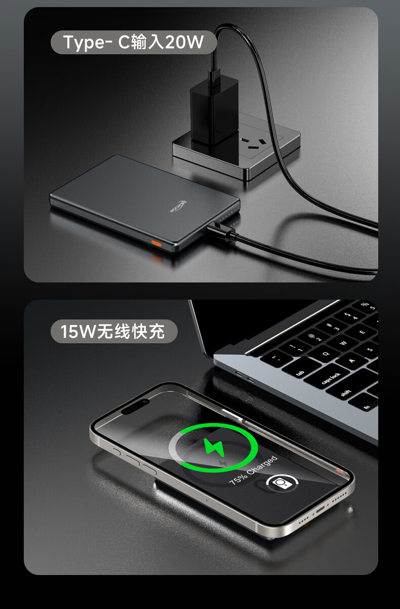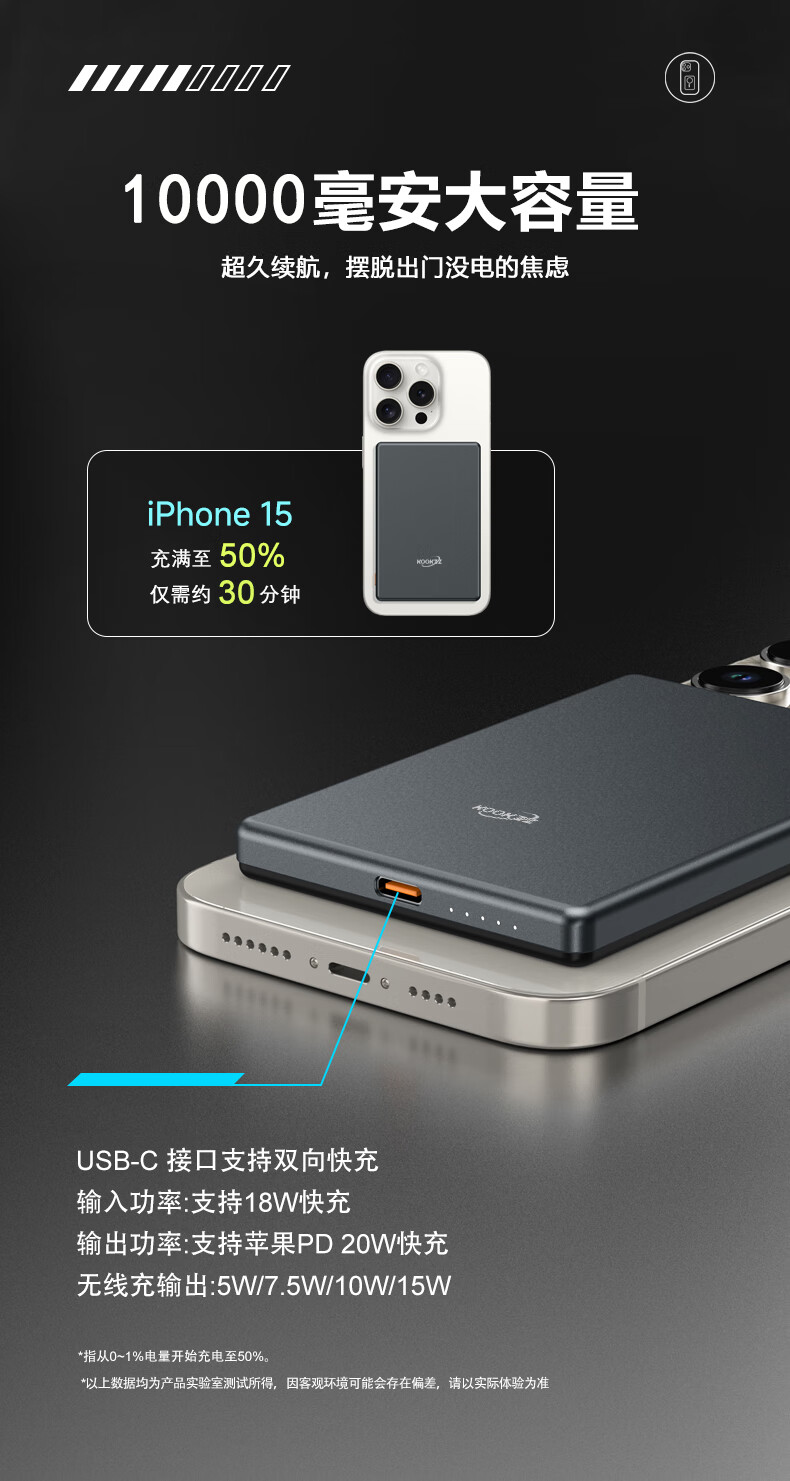 【分仓直发包邮】KOOKZZ酷客者超薄磁吸1万毫安移动电源(可上飞机)DY22