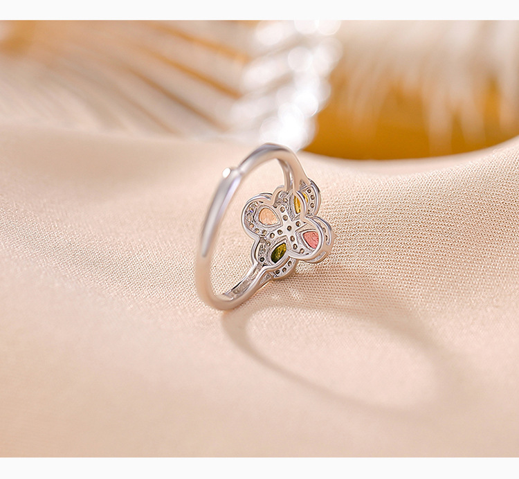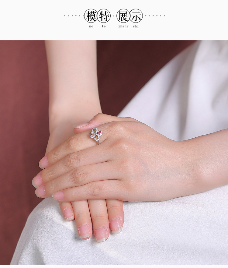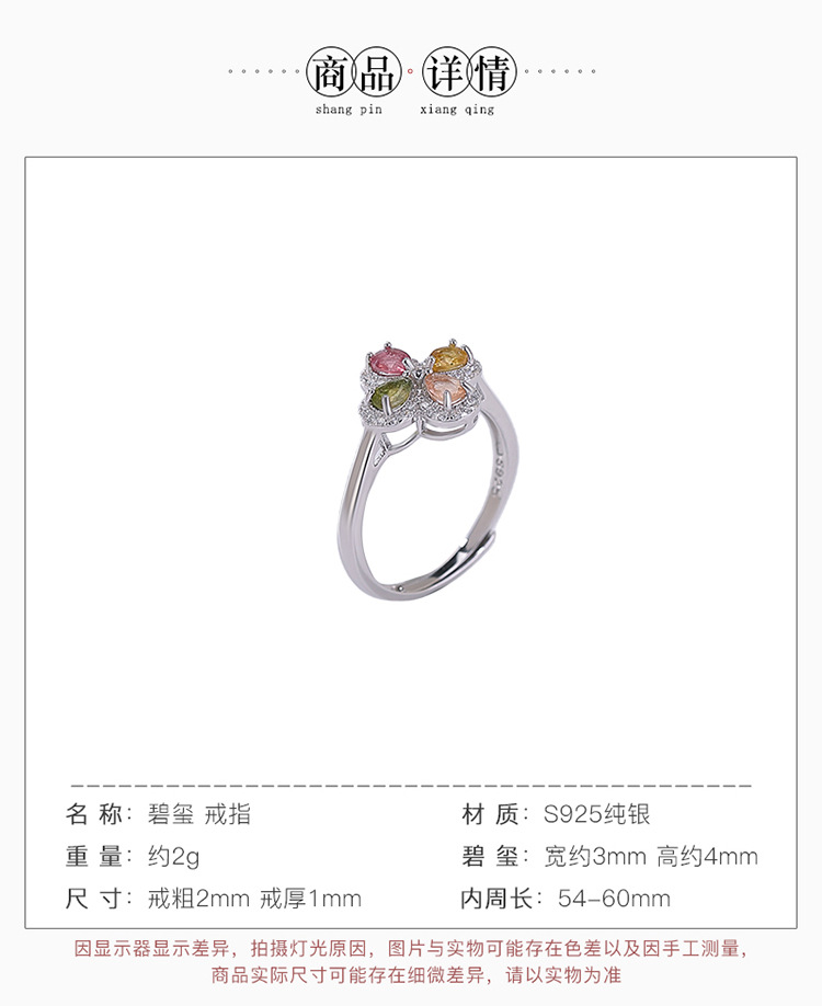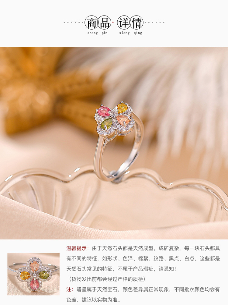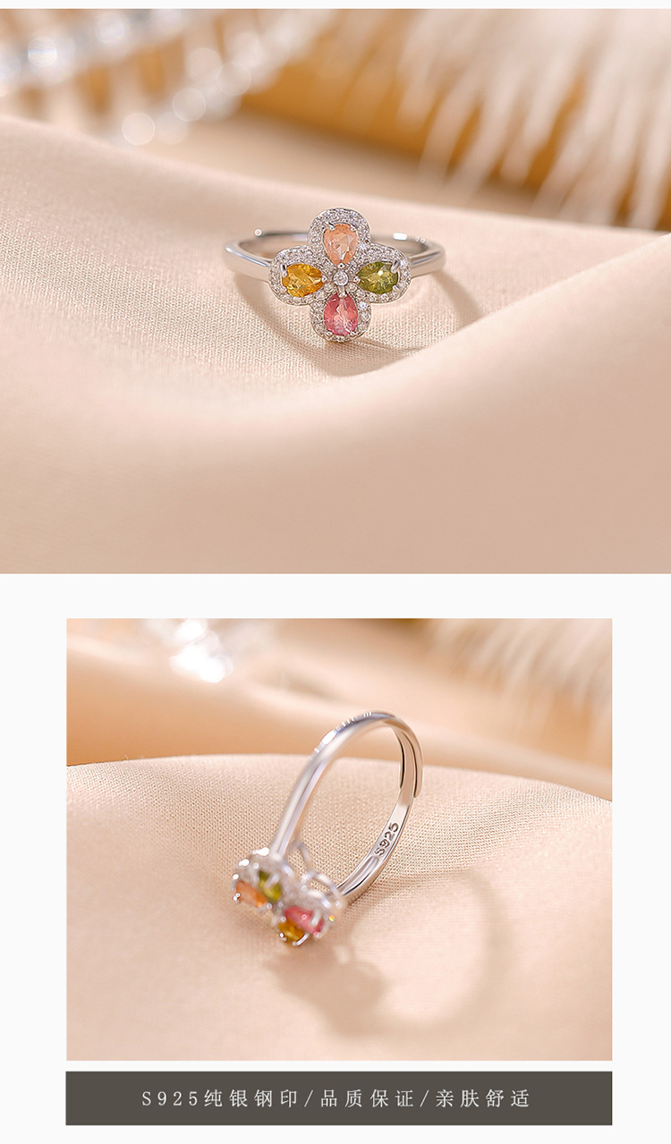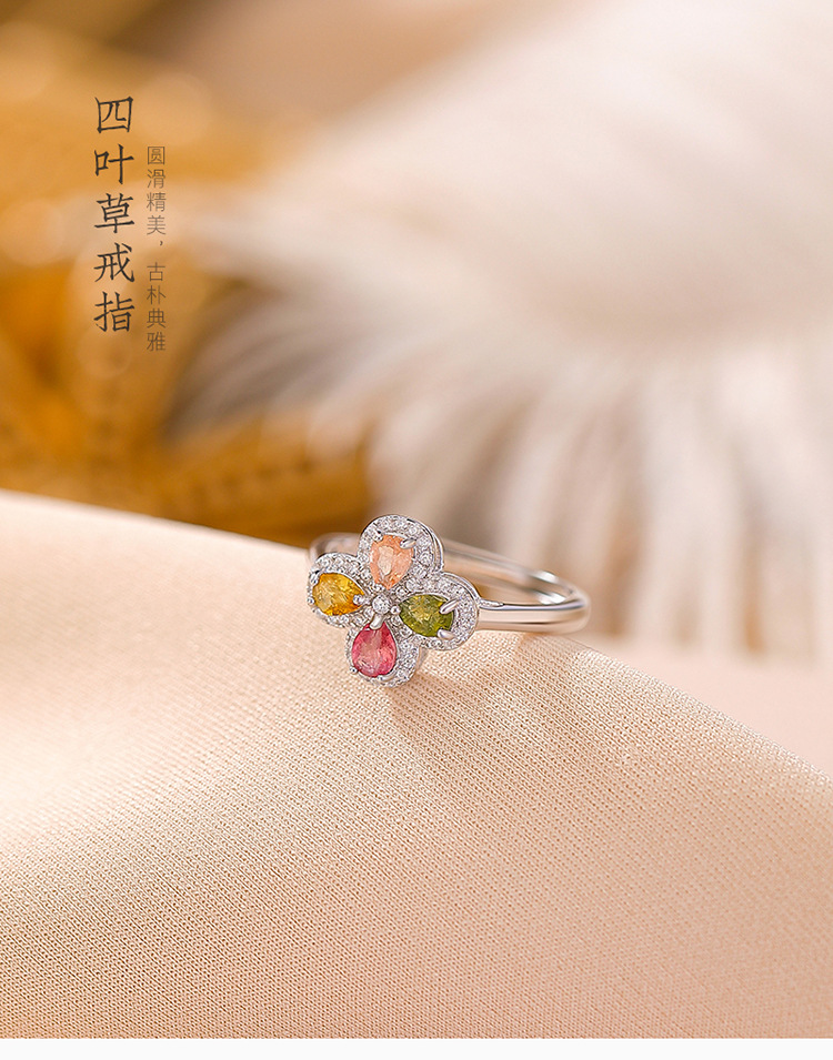 【四叶如画】S925纯银碧玺水滴四叶草开口戒指【CW-23325】