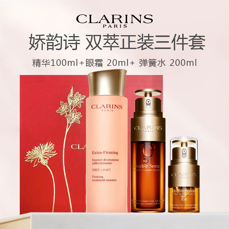法国 CLARINS 娇韵诗正装三件套( 双萃精华100ml 限用日期27年7月+双萃精华眼霜 20ml+ 弹簧水 200ml)
