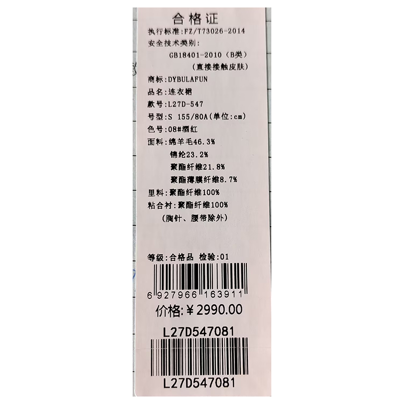 戴布拉芬连衣裙L27D547