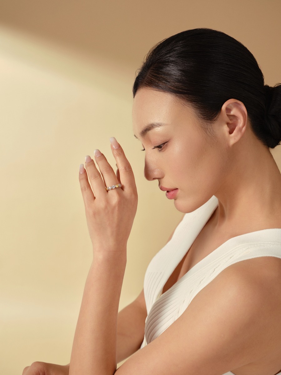 『日晒』可调节咖啡金彩锆戒指