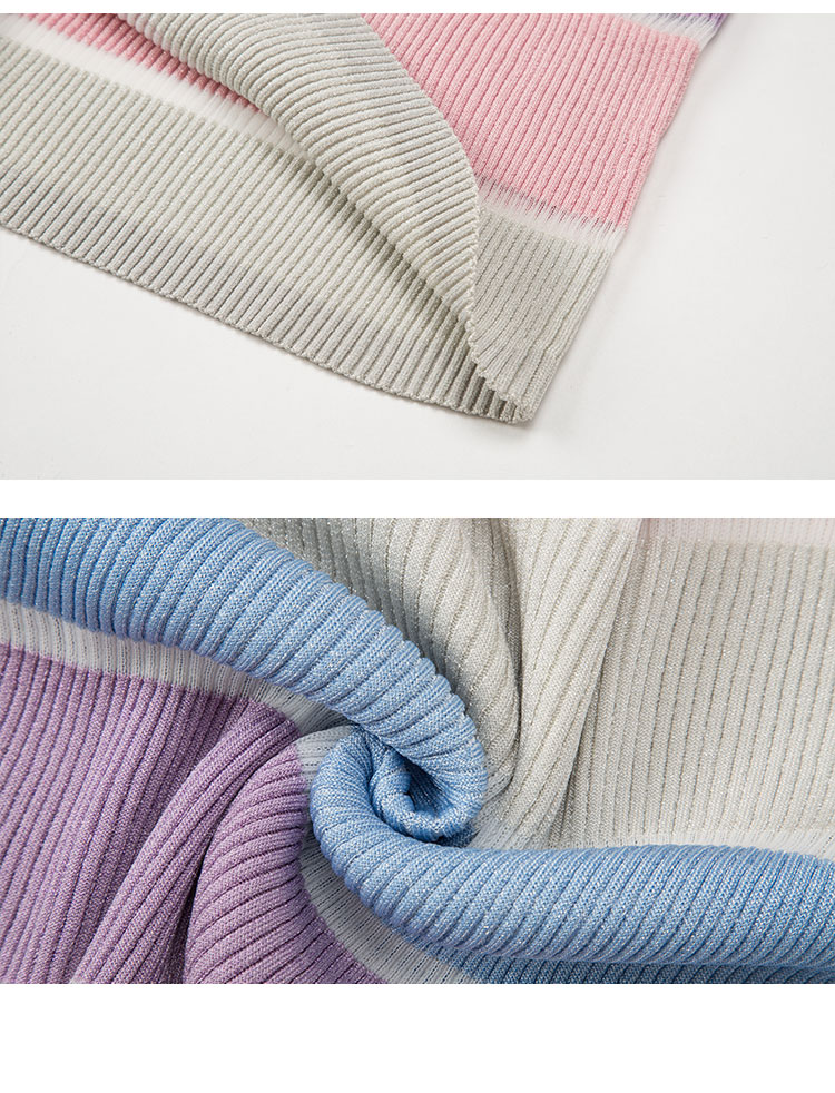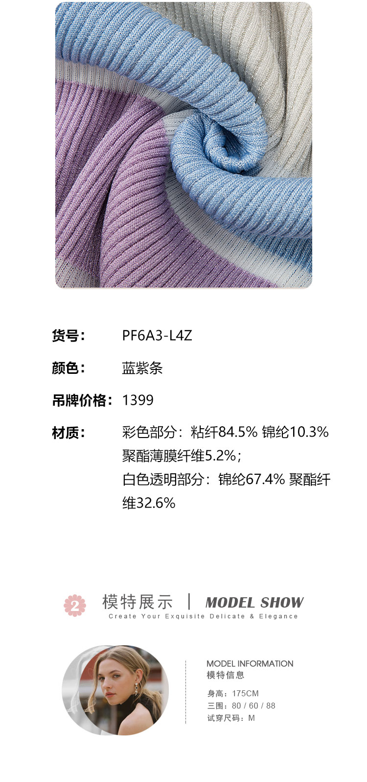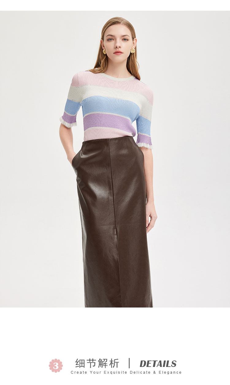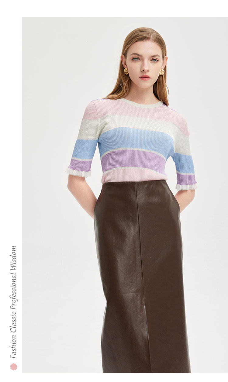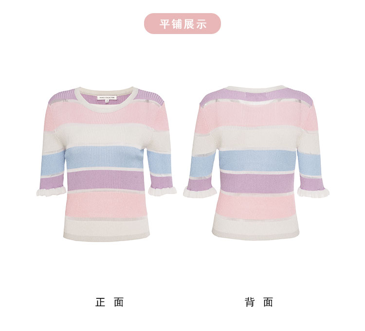 PF6A3夏季新品丝质条纹常规款宽松五分袖针织衫