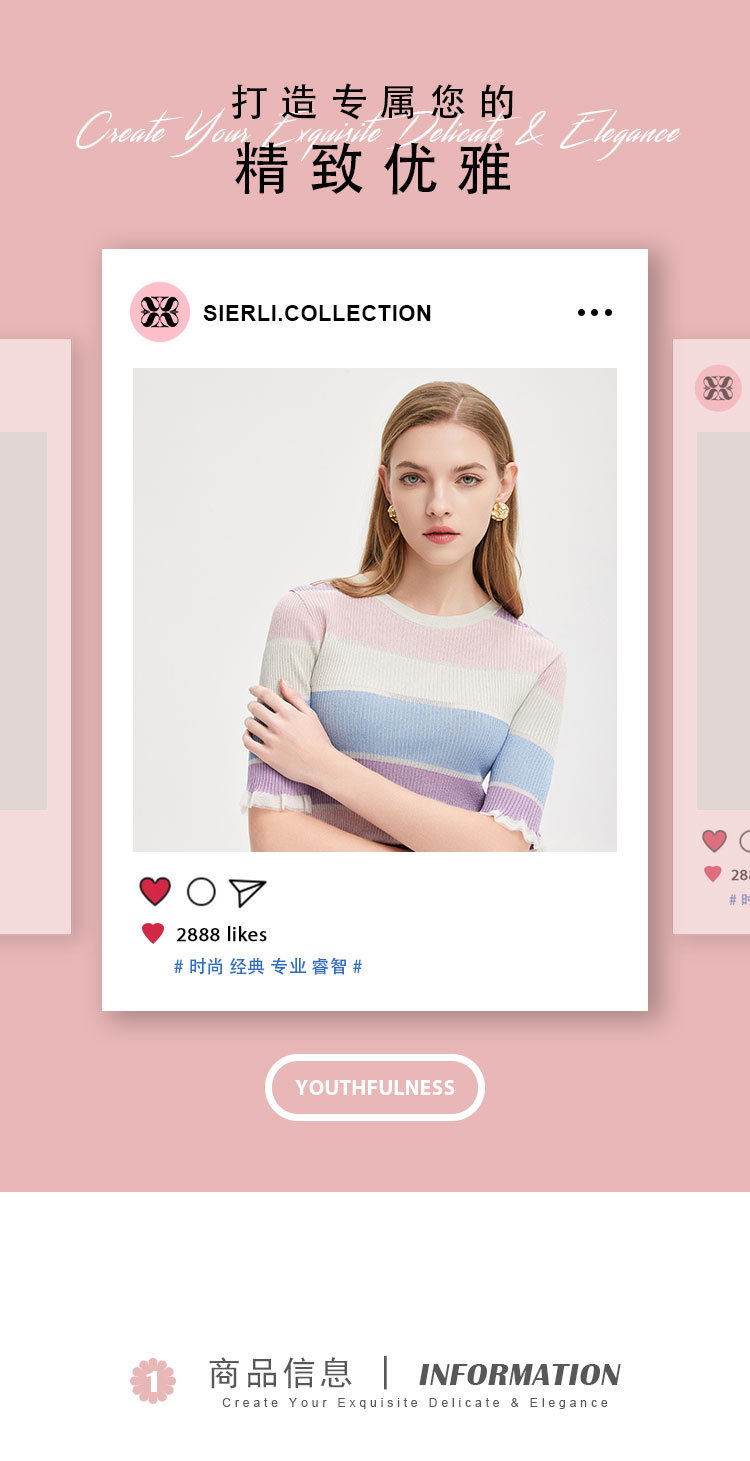 PF6A1斯尔丽夏季新品丝质条纹常规款宽松中袖针织衫
