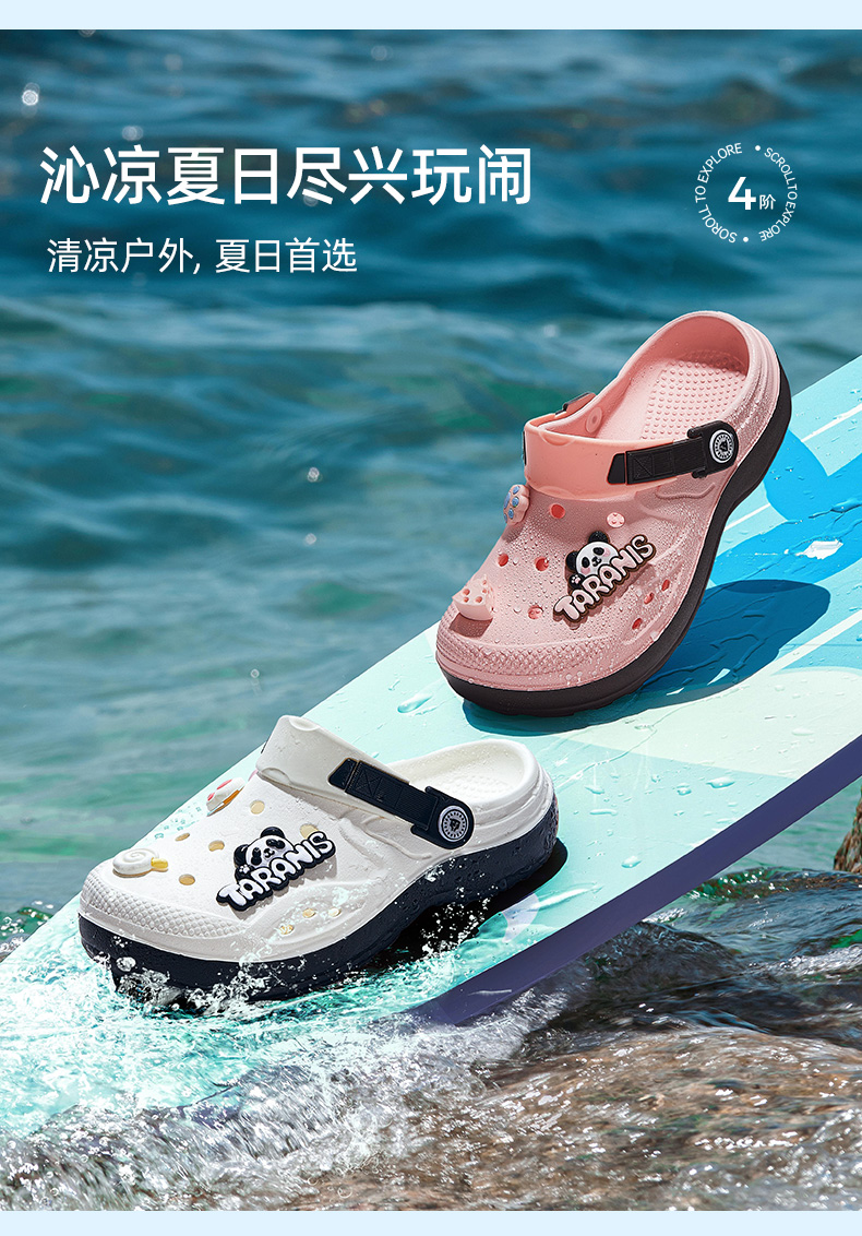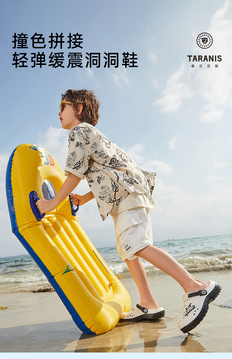 泰兰尼斯儿童洞洞鞋夏季新款女童沙滩鞋男童防滑软底包头凉拖鞋 F09X5B7351