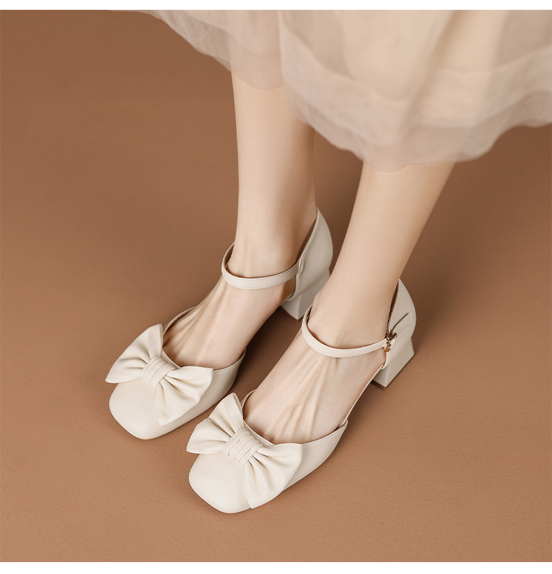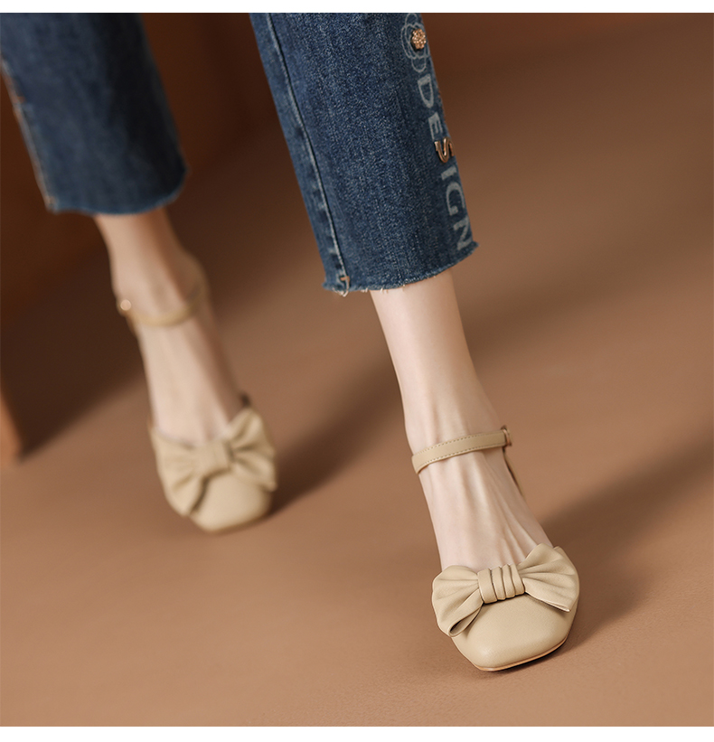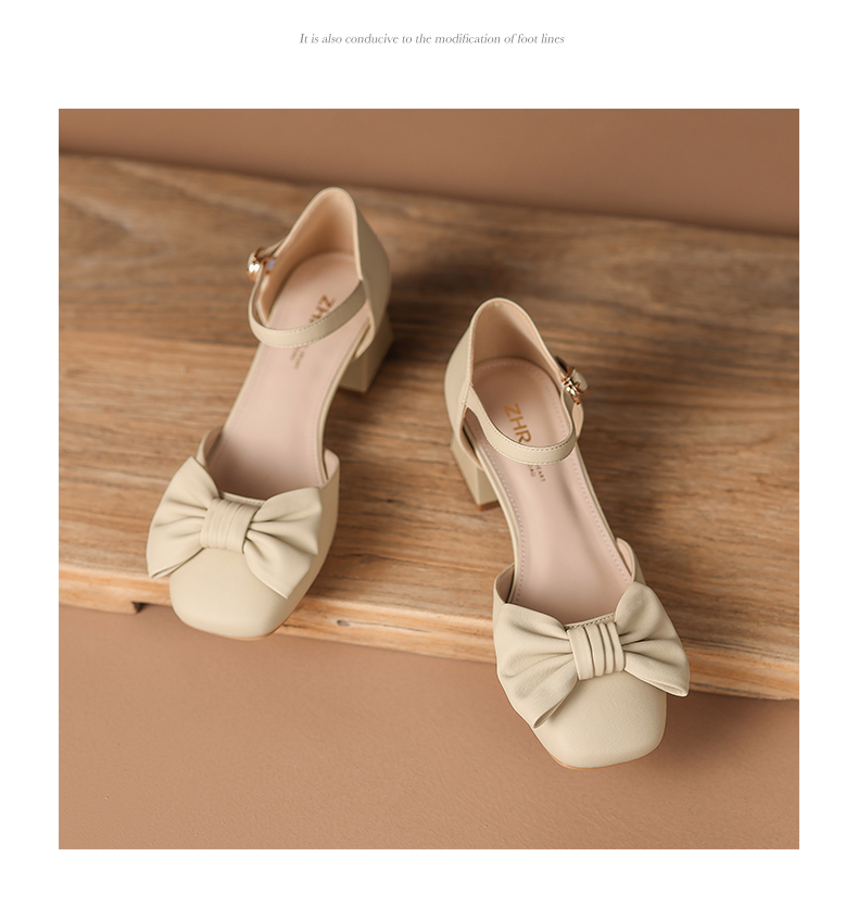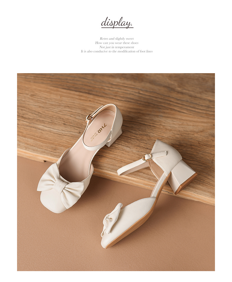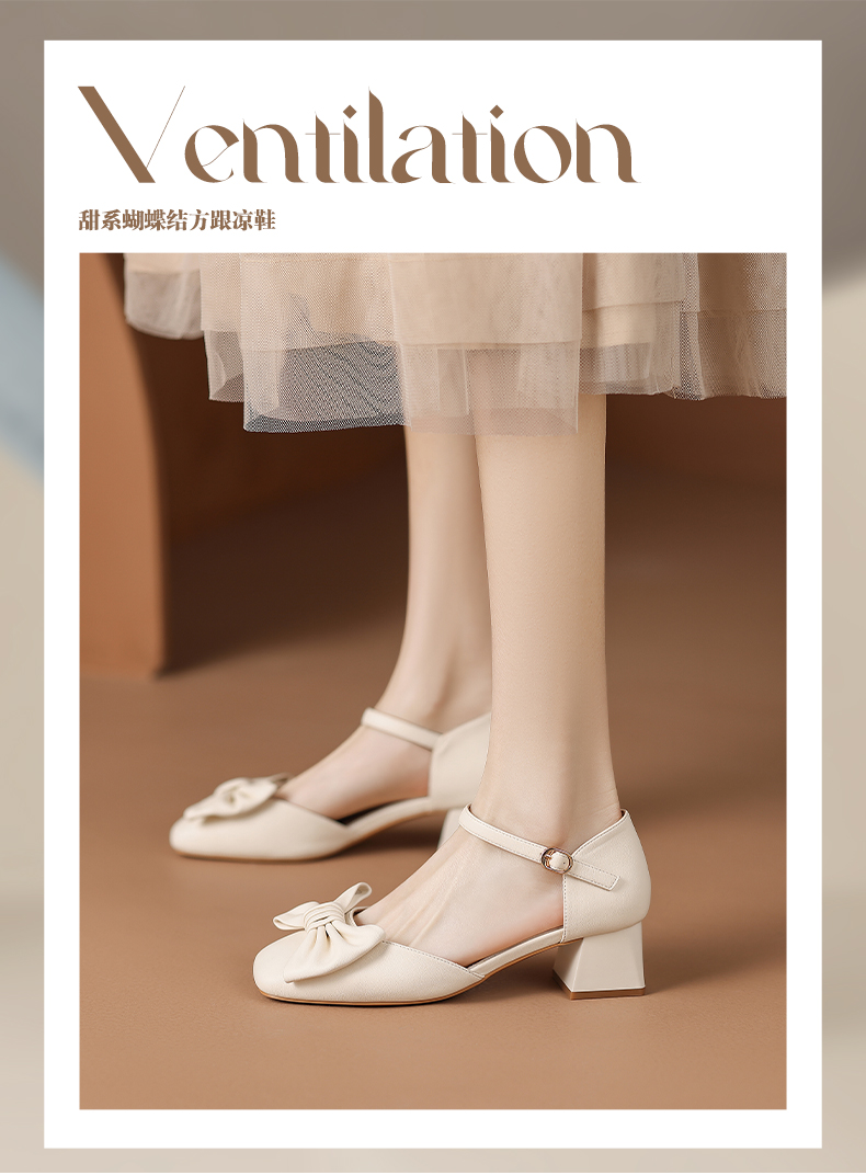 ZHR蝴蝶结包头凉鞋女2023新款夏季法式复古玛丽珍鞋一字扣带凉鞋