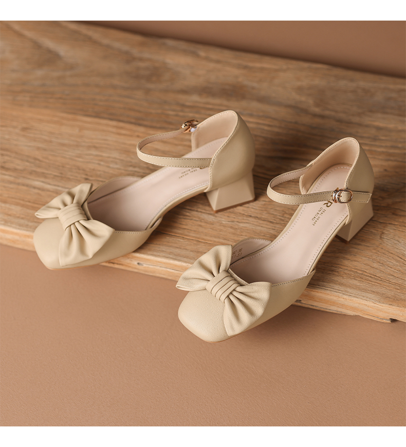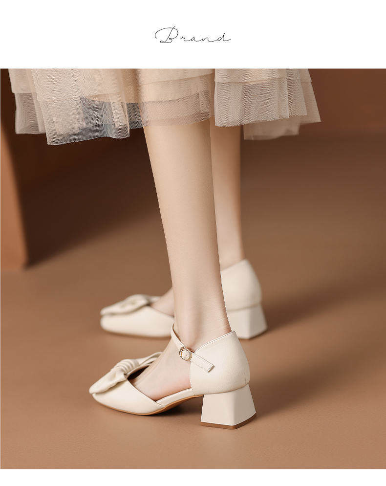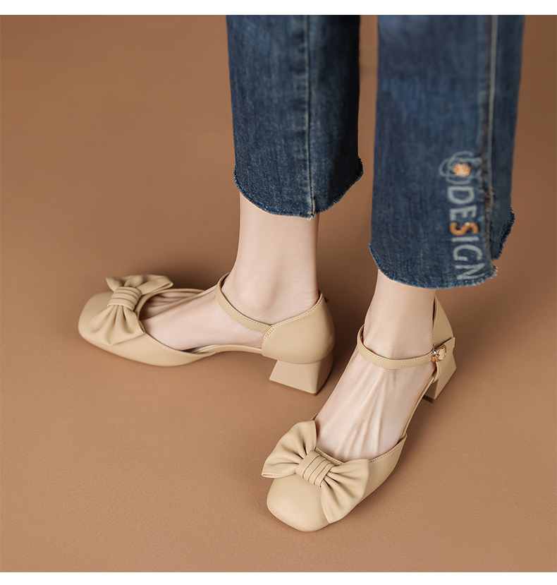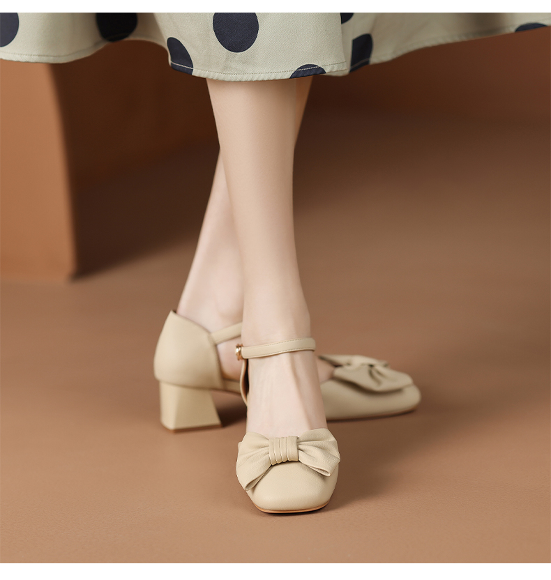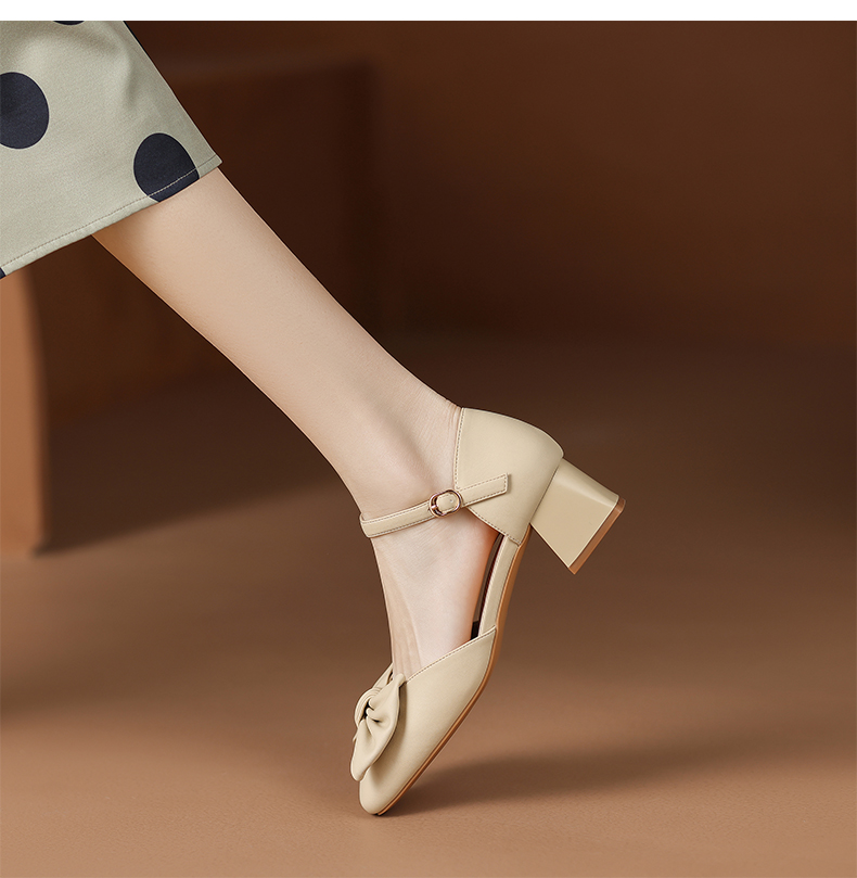 ZHR蝴蝶结包头凉鞋女2023新款夏季法式复古玛丽珍鞋一字扣带凉鞋