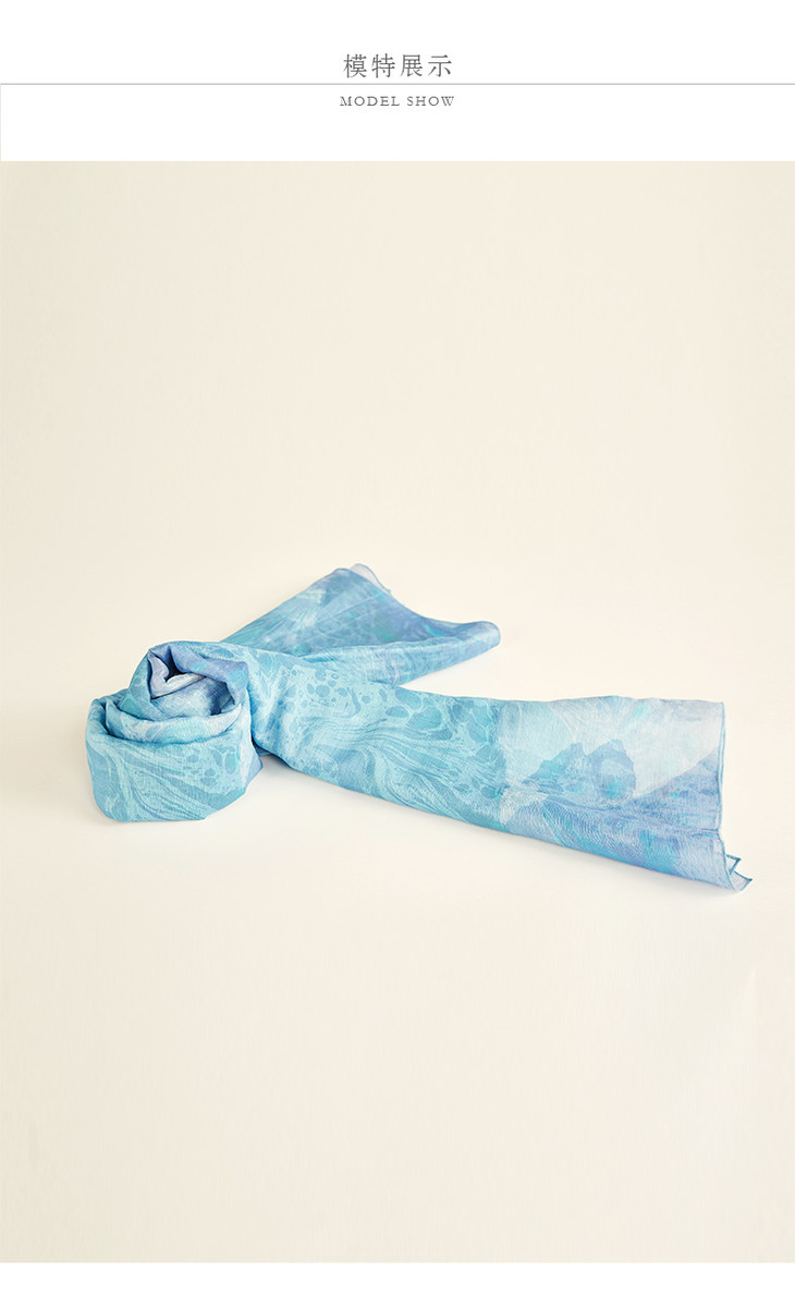 TANGY Collection天意丝麻乔其印花围巾 商品图0