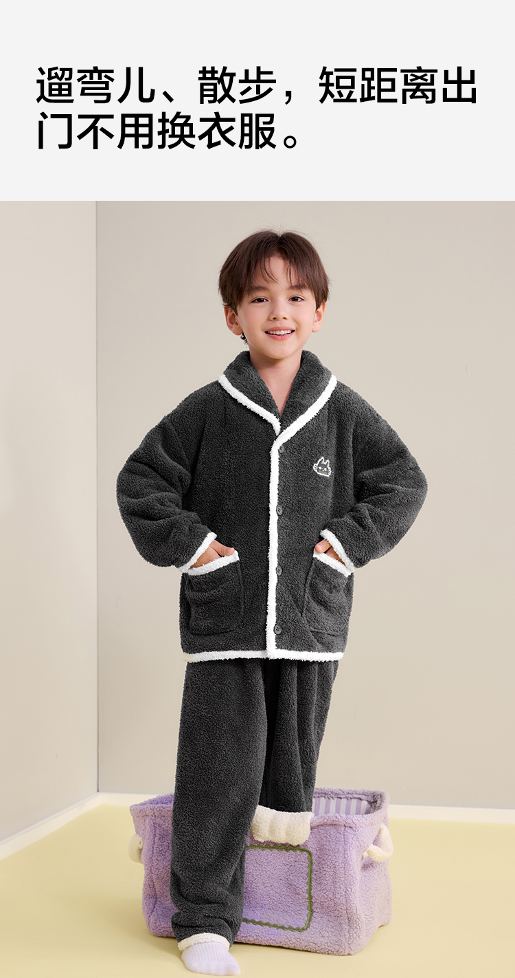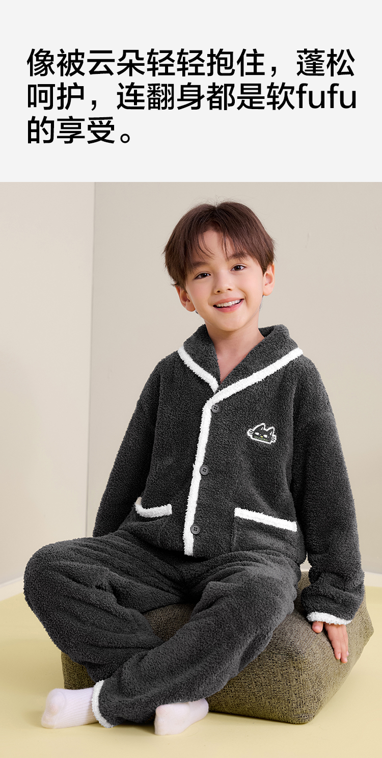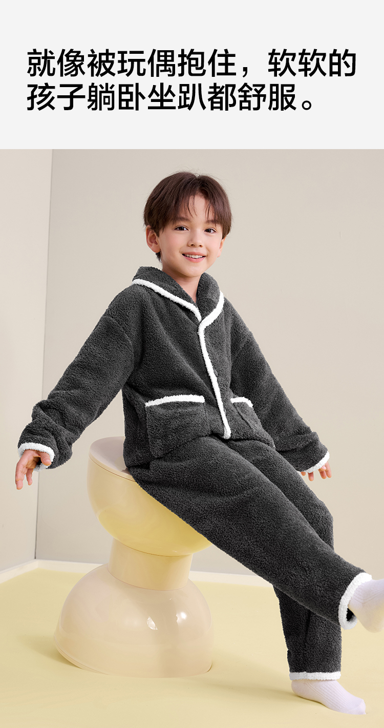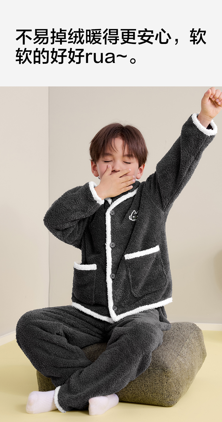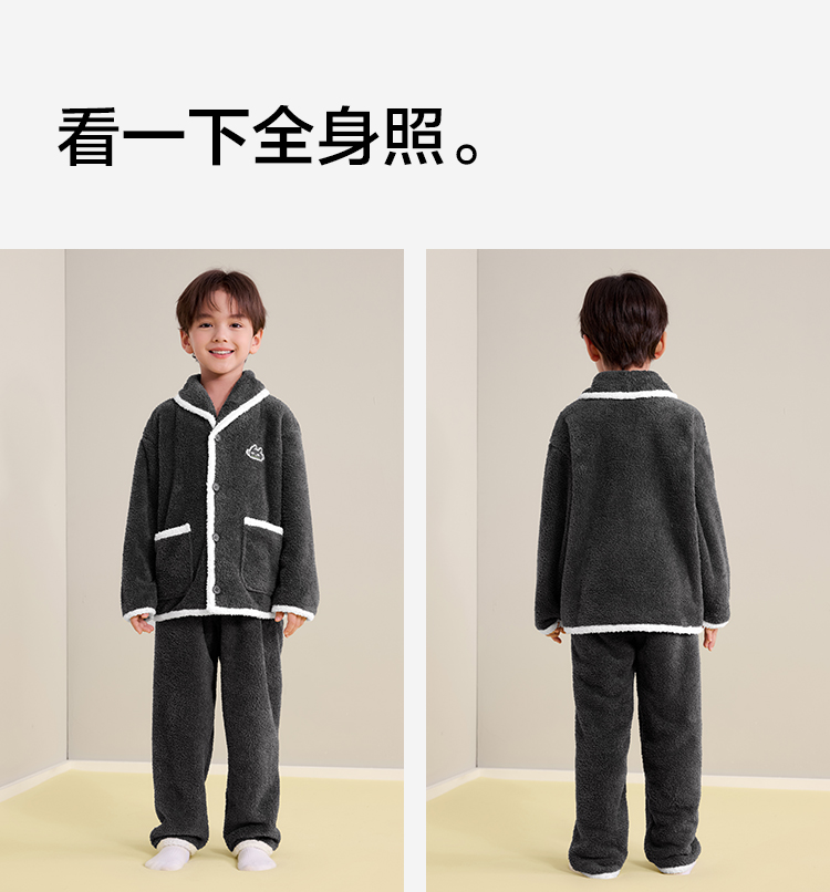 【120-160】【有棵树】男童冬款半边绒家居服套装