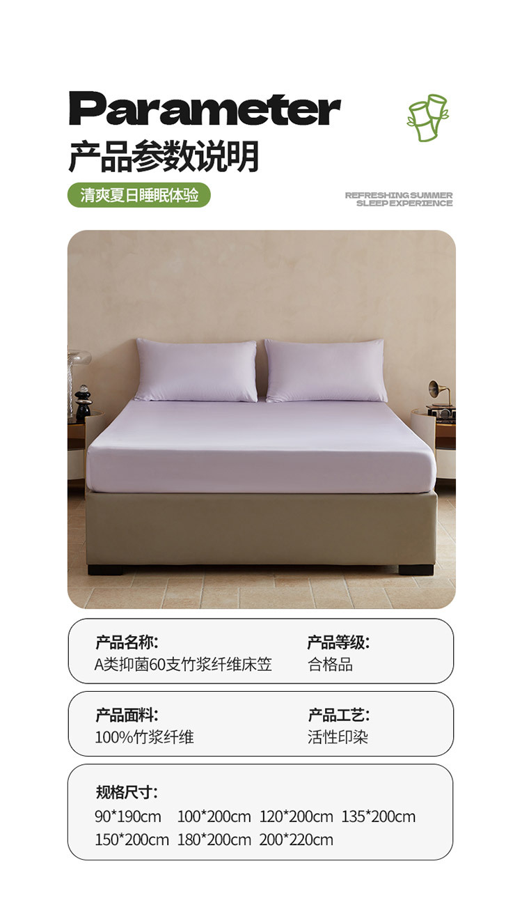 【60S竹纤维床笠】竹纤维单品床笠良品纯色60S支A类抗菌床套席梦思套婴幼儿