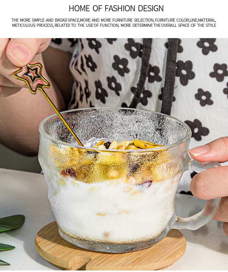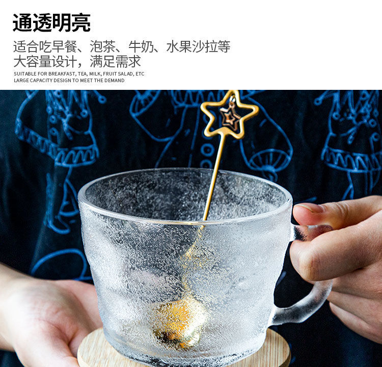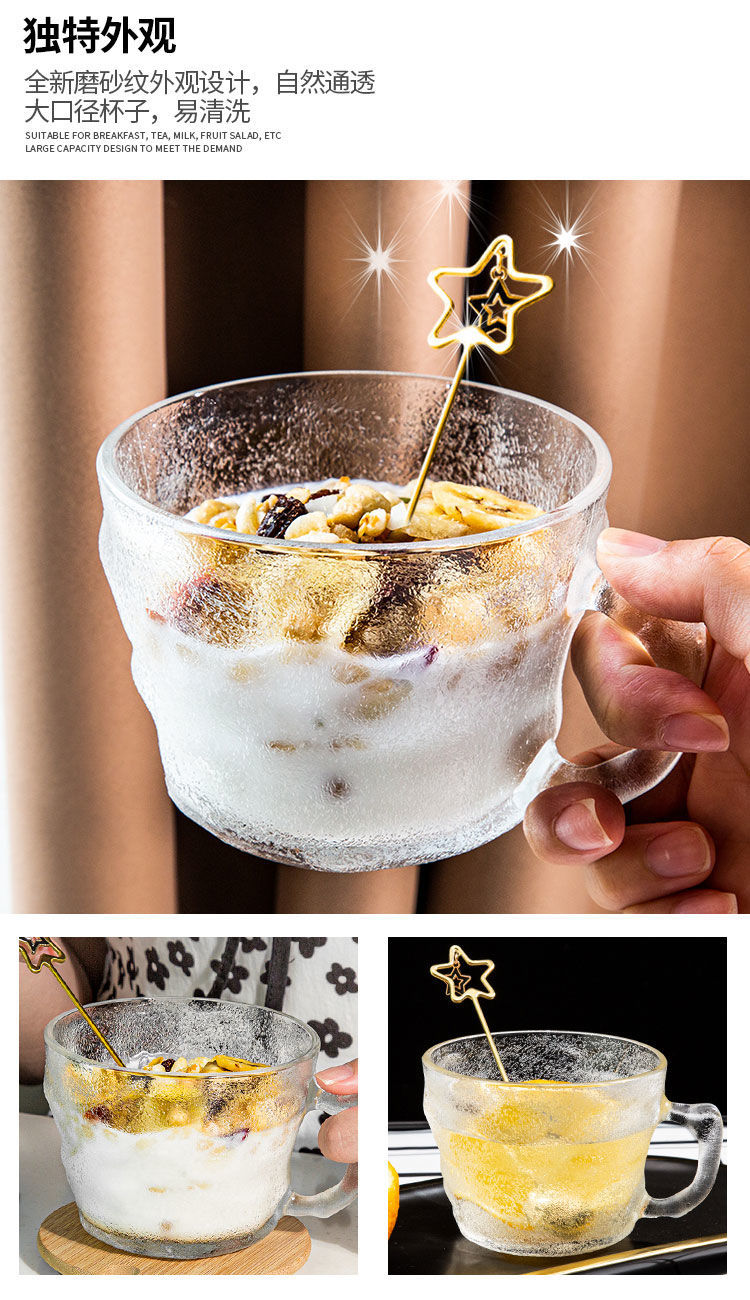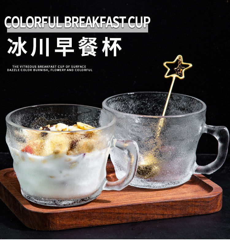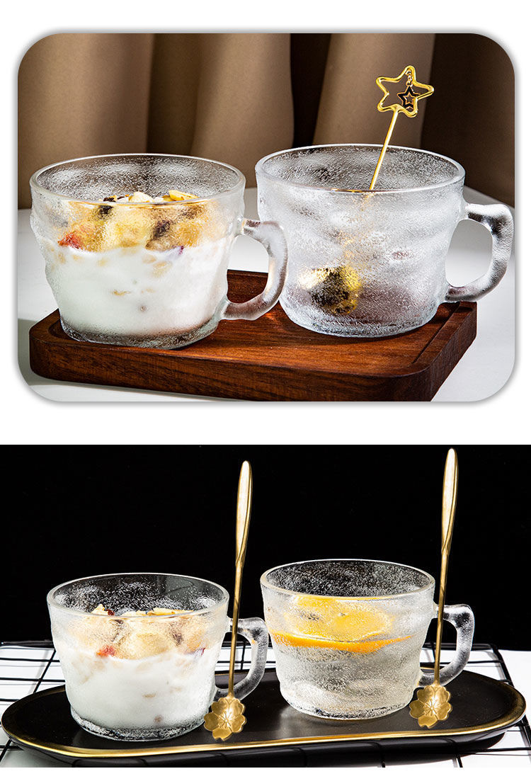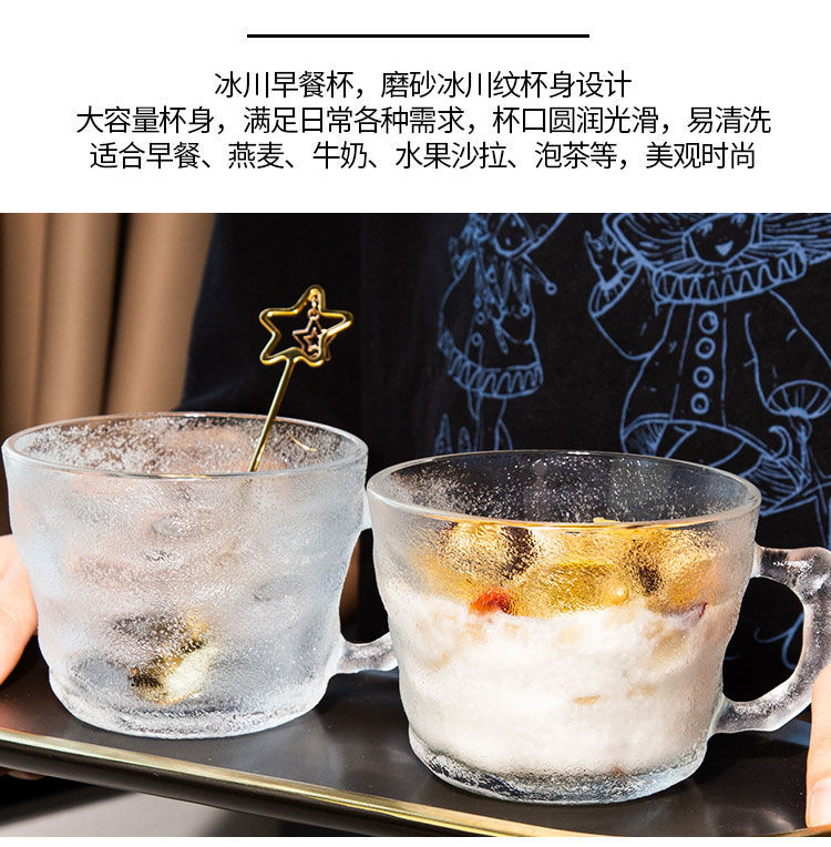 【买一送一】玻璃杯子透明家用早餐杯简约高颜值水杯把手牛奶杯大容量冰川杯【不可微波炉使用】A -2513