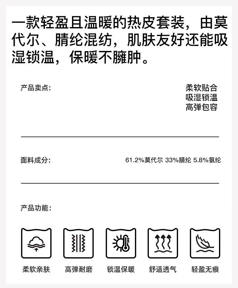 猫太推荐---这套保暖内衣的名字叫“热皮” 莫代尔纯色圆领热皮保暖内衣, 舒适高弹隐形