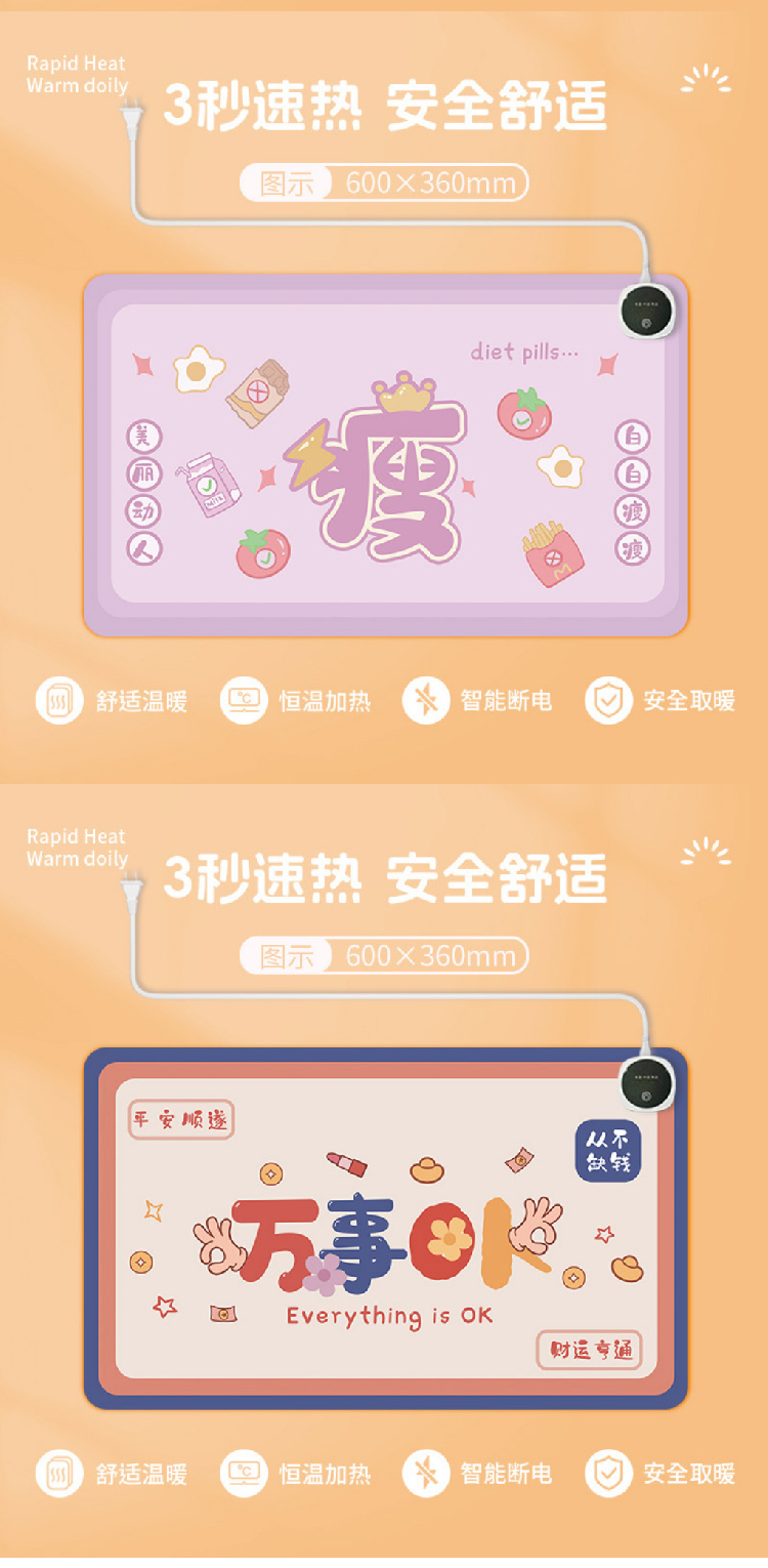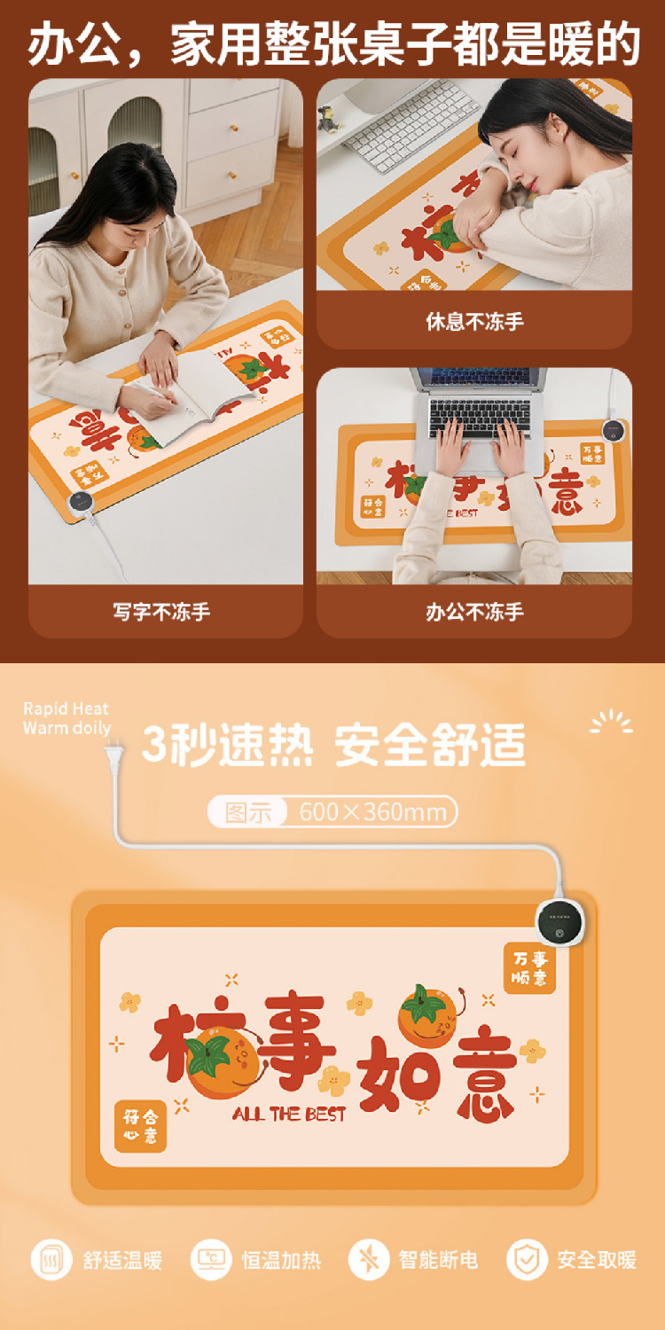暖桌垫加热桌垫发热鼠标学习办公写作业冬天桌面暖手加热垫