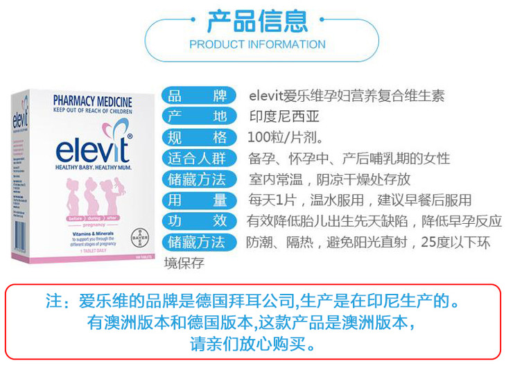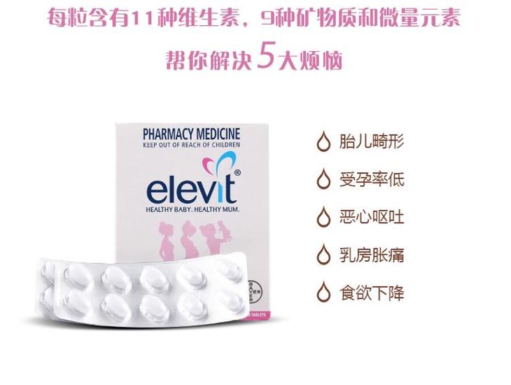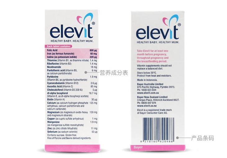 【保税仓】elevit爱乐维Menevit复合维生素 女士备孕前中后期叶酸 女士孕妇营养100片