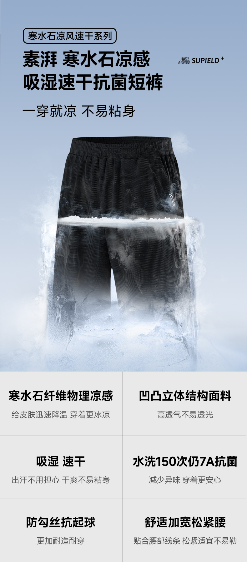 素湃Supield菠萝纹吸湿速干运动短裤男7A抗菌寒水石凉感五分裤夏