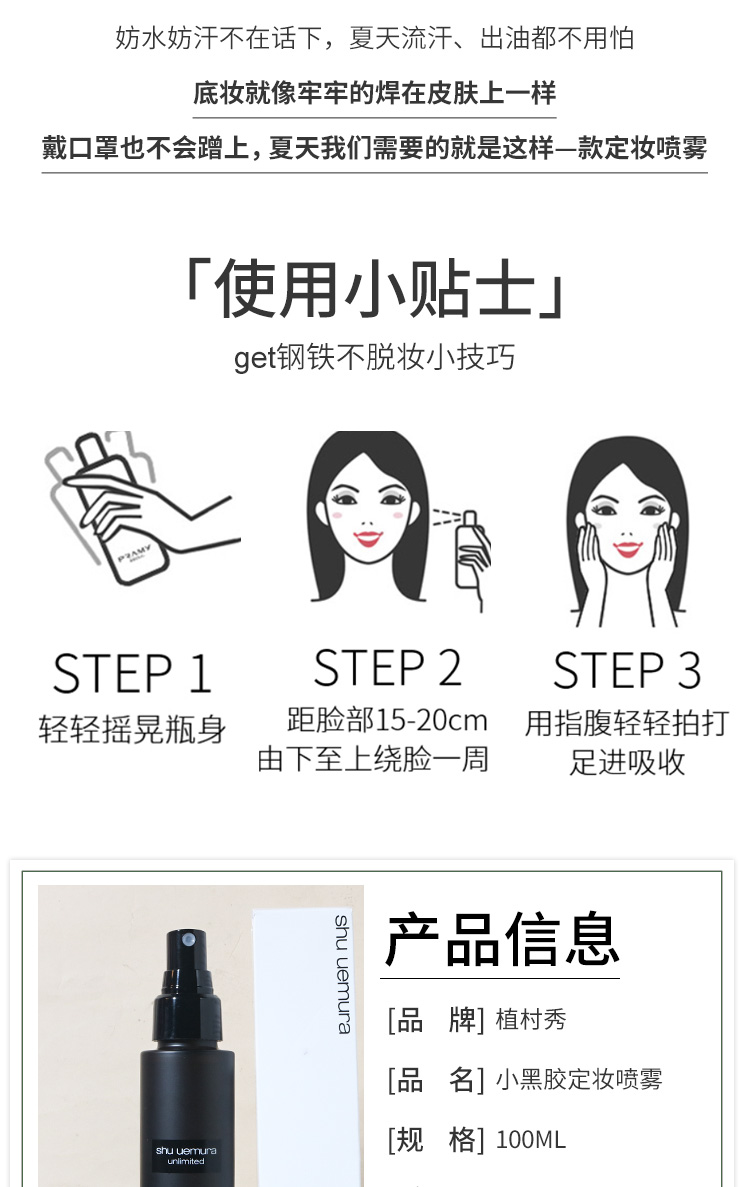 【YZ】Shu uemura植村秀小黑胶定妆喷雾羽纱持妆保湿喷雾持久不脱妆控油