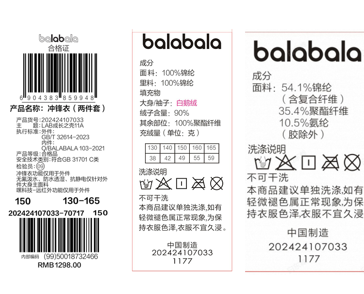 【lab系列】巴拉巴拉童装儿童羽绒服女童冲锋衣防护两件套保暖潮