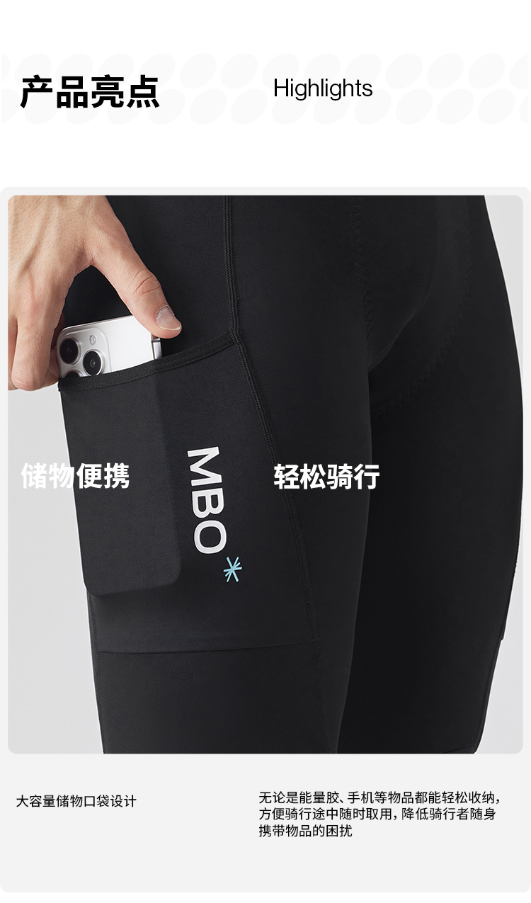 MBO男子便携无忧储物背带骑行七分裤25年夏季新款双箭头T120C -A (经销商专拍链接,非经销商拍单不发货)