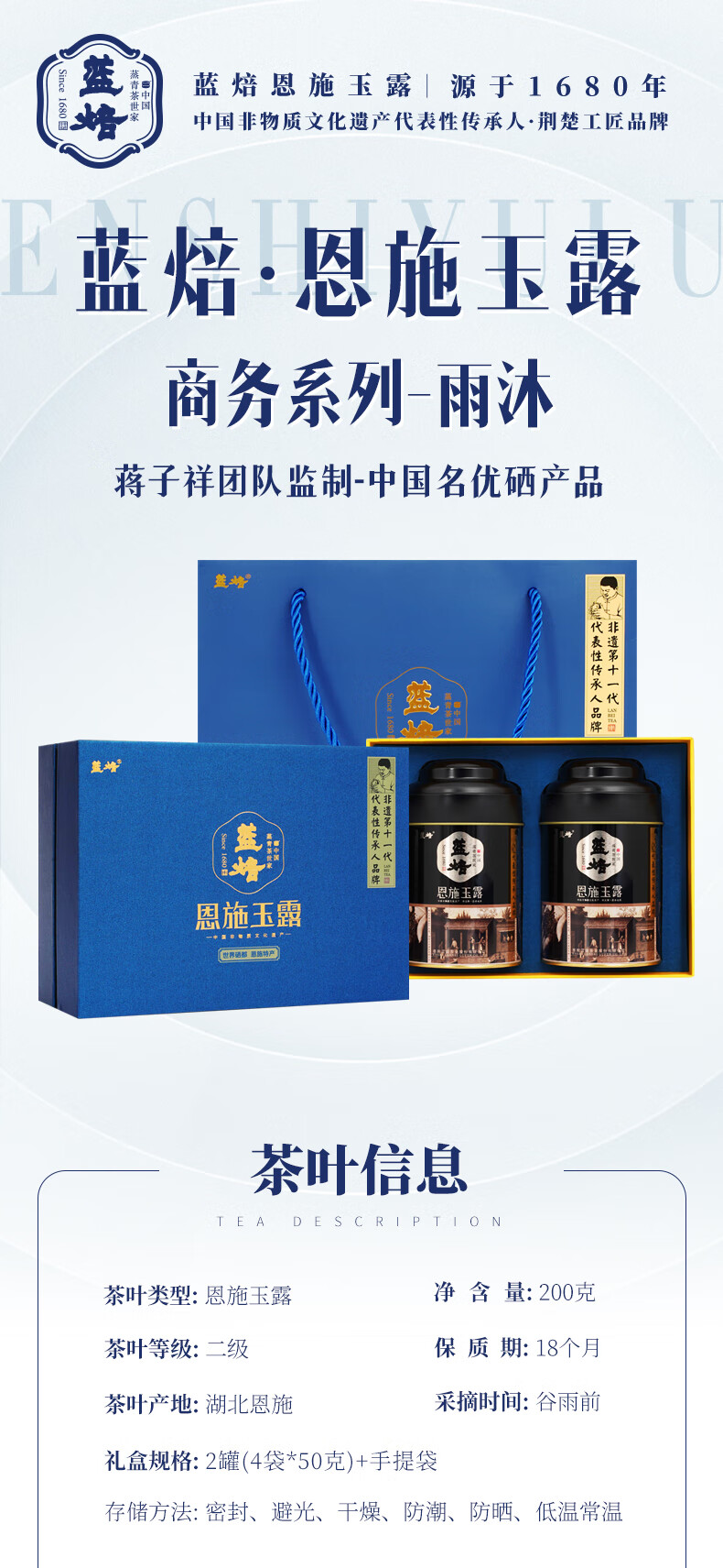 蓝焙2025年雨前春新茶湖北铭茶恩施玉露蒸青工艺绿茶二级富硒茶绿茶叶 恩施玉露雨沐200克*1盒 200克