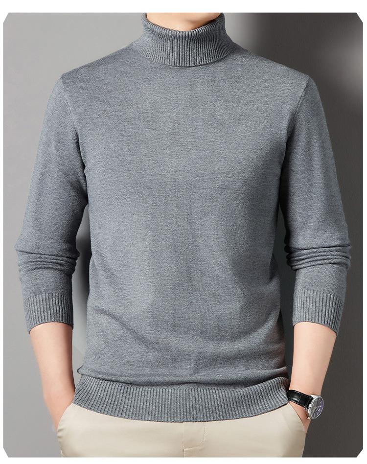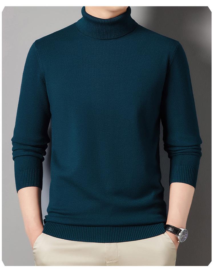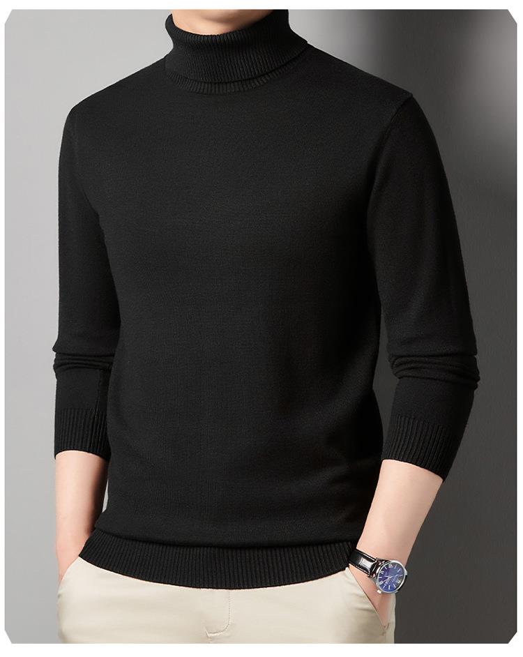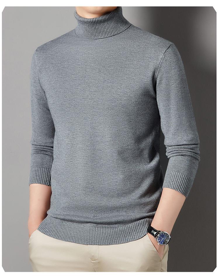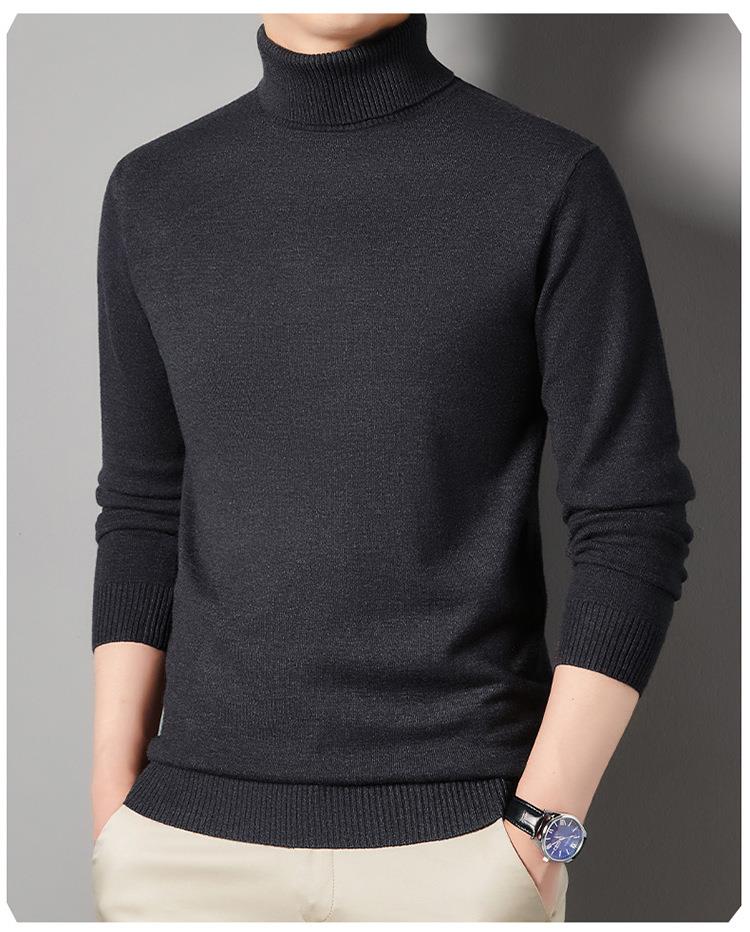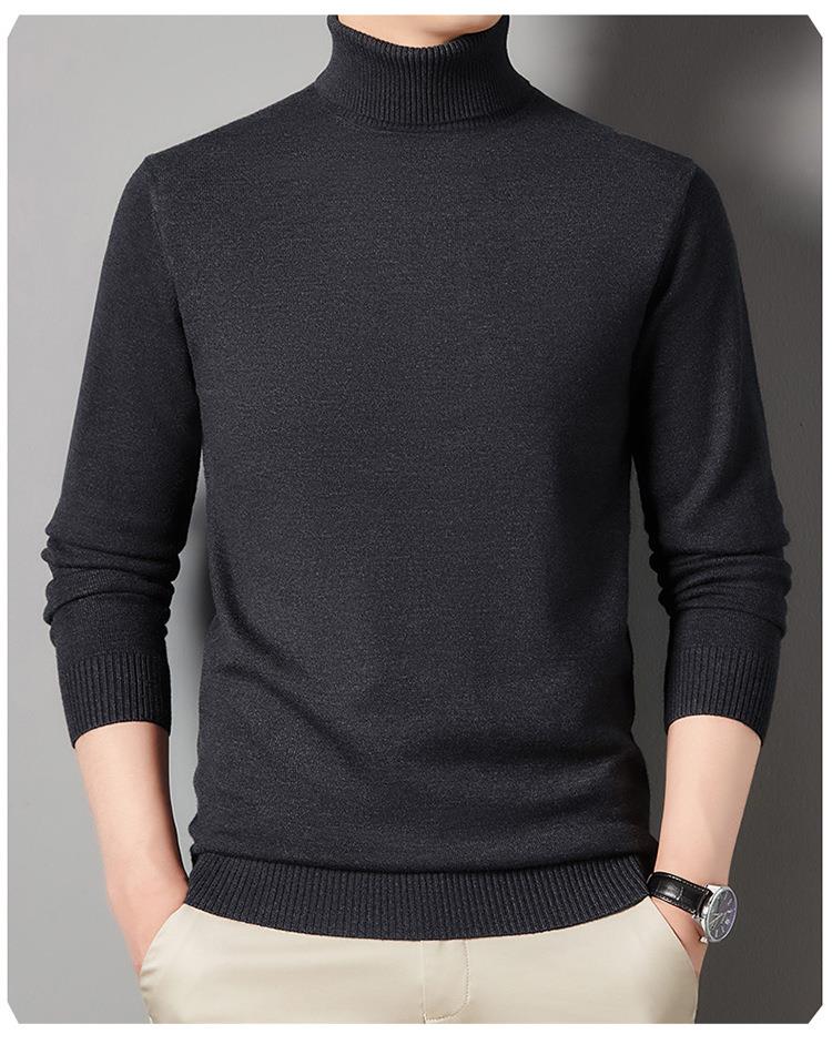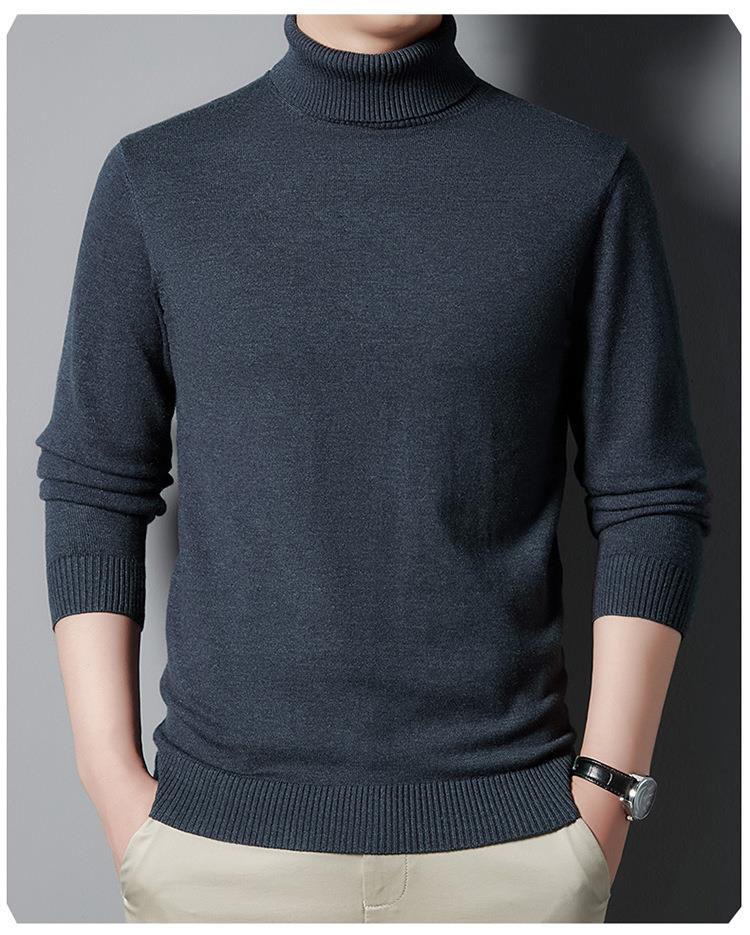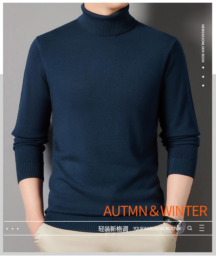 羊毛混纺长袖针织毛衣男士秋冬季新款加厚纯色休闲百搭打底羊毛衫