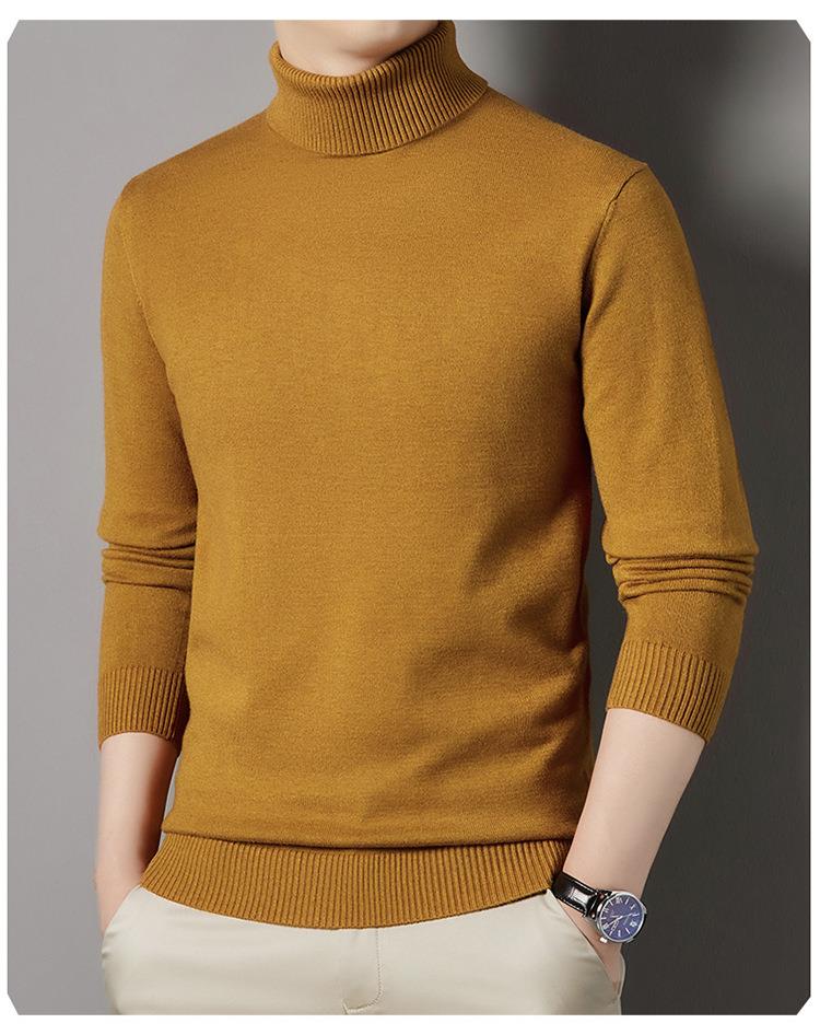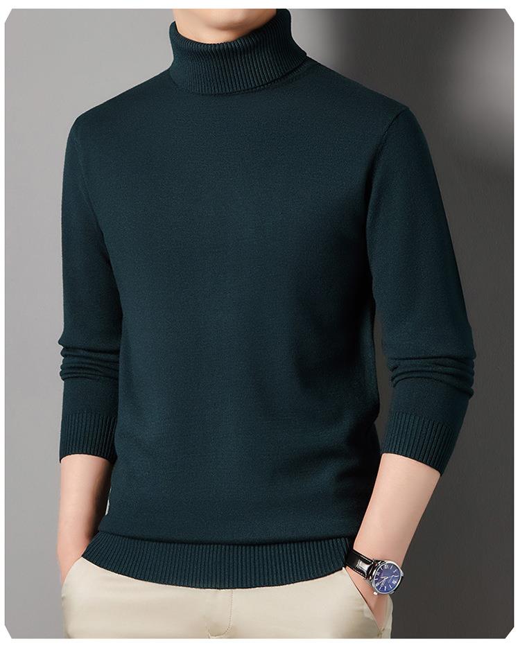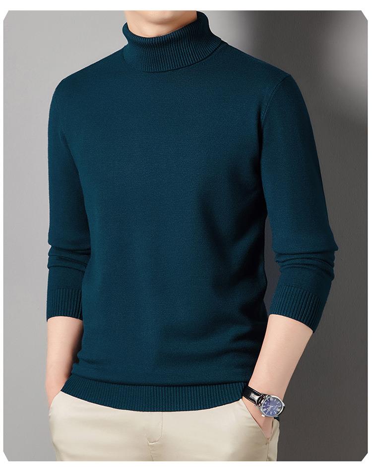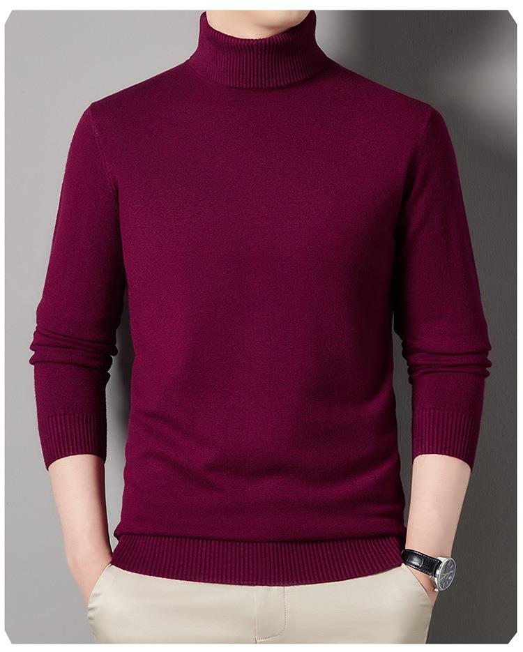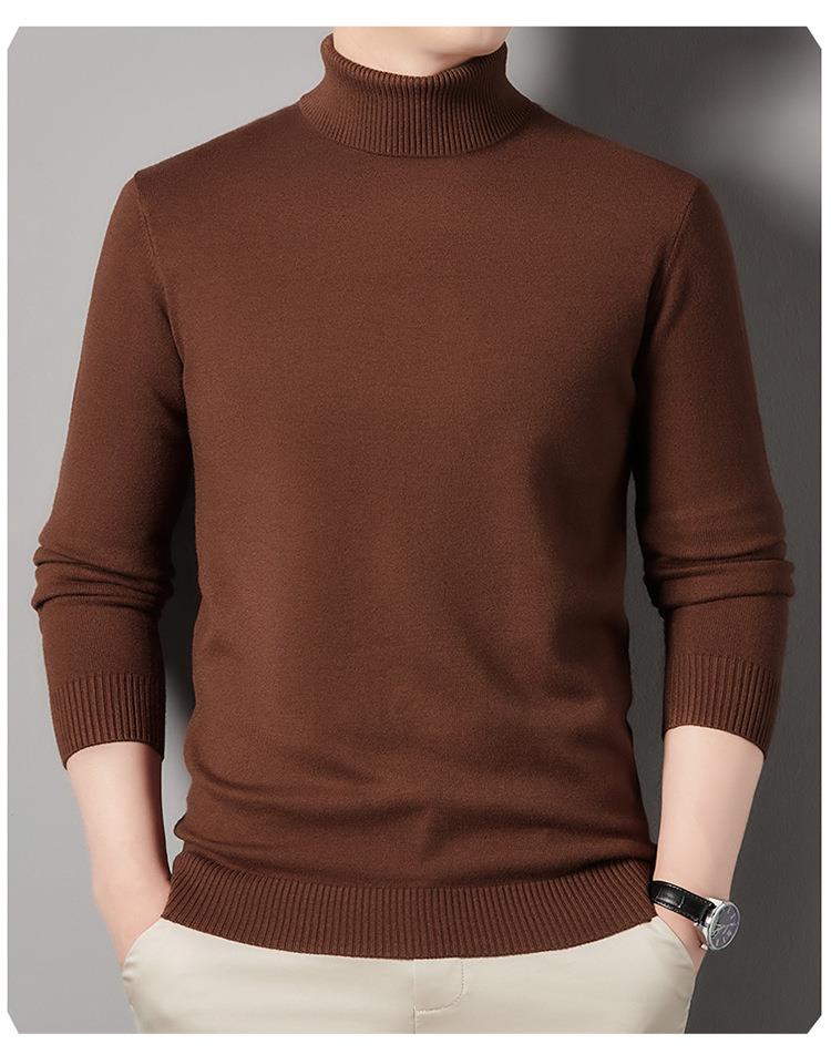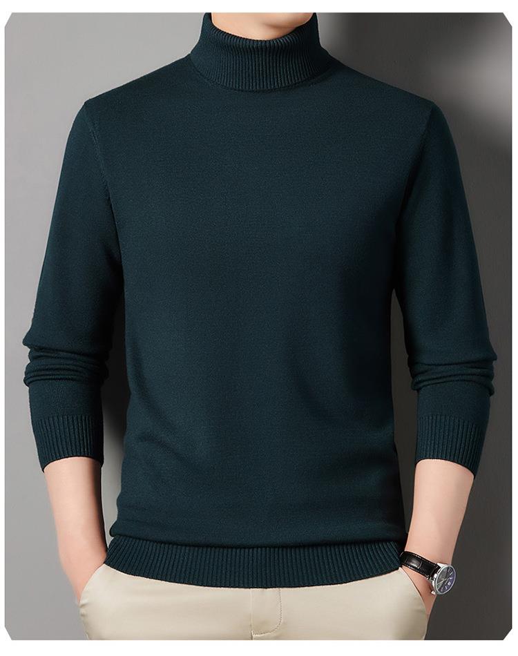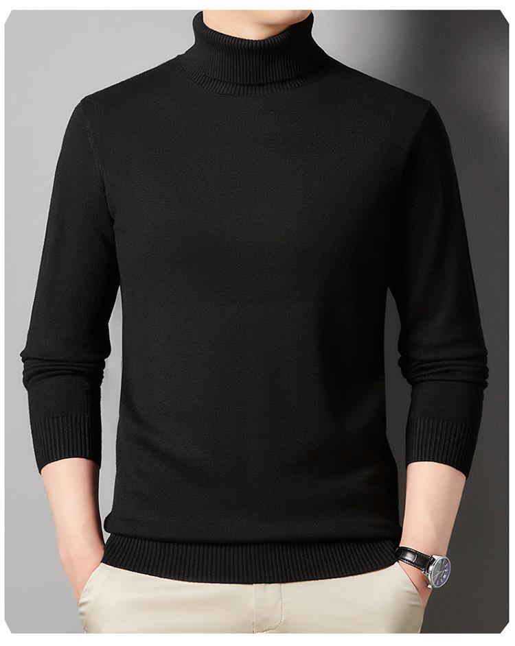 羊毛混纺长袖针织毛衣男士秋冬季新款加厚纯色休闲百搭打底羊毛衫