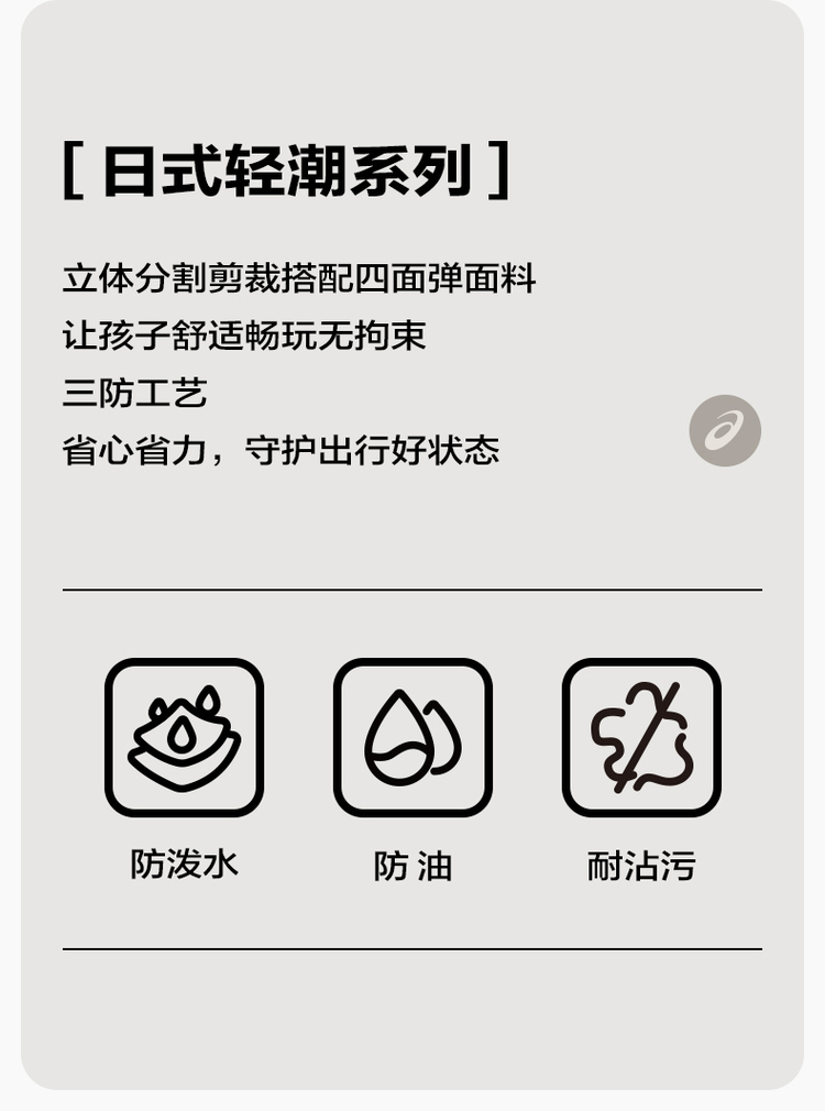 ASICS/亚瑟士童装2023秋季新款男童女童梭织外套三防科技运动外套