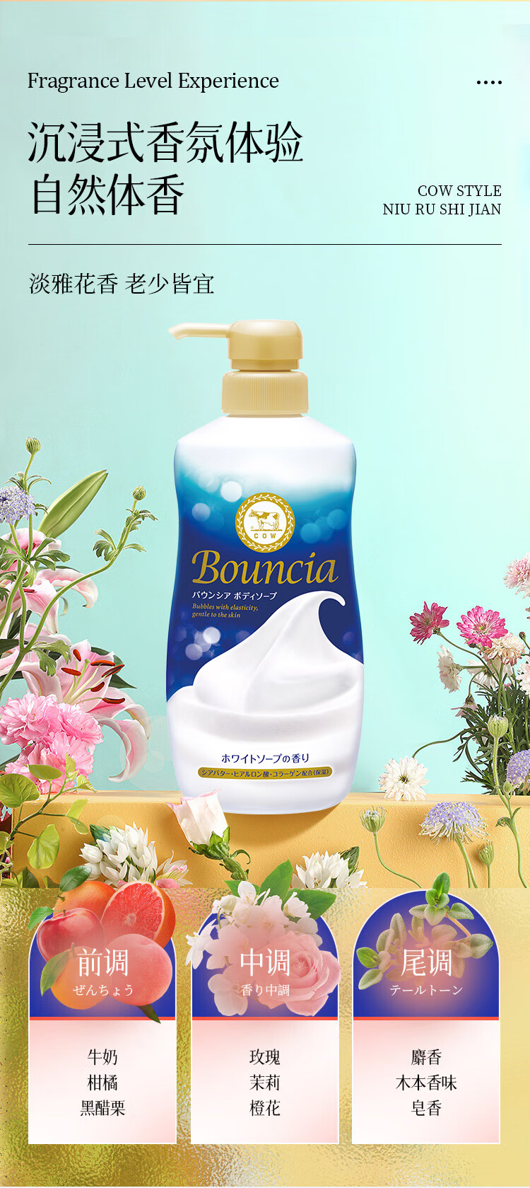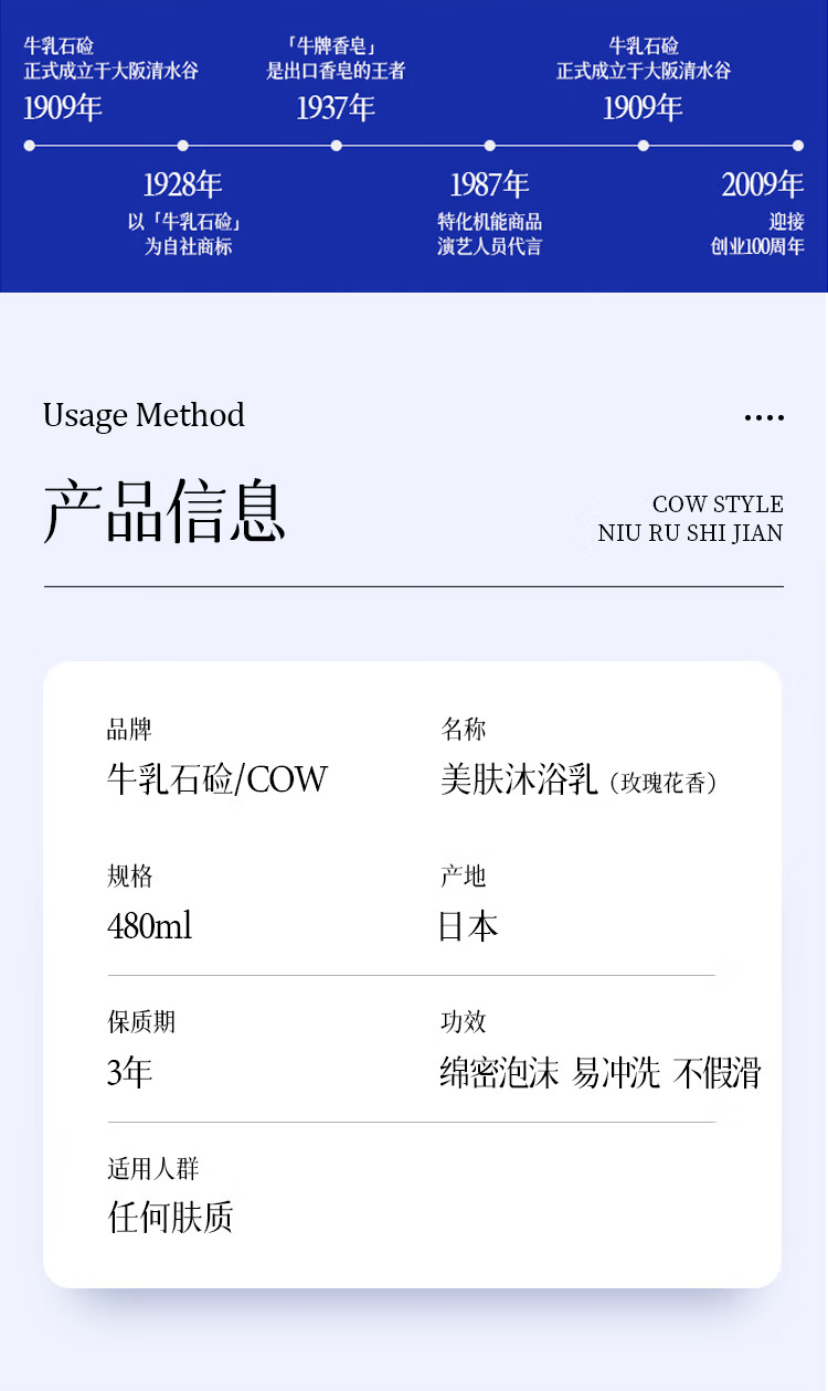 日本原装进口牛乳石硷美肤沐浴露480ml