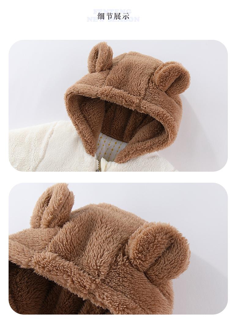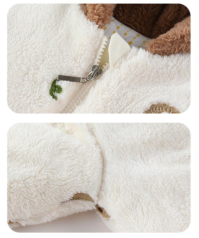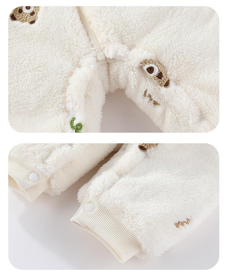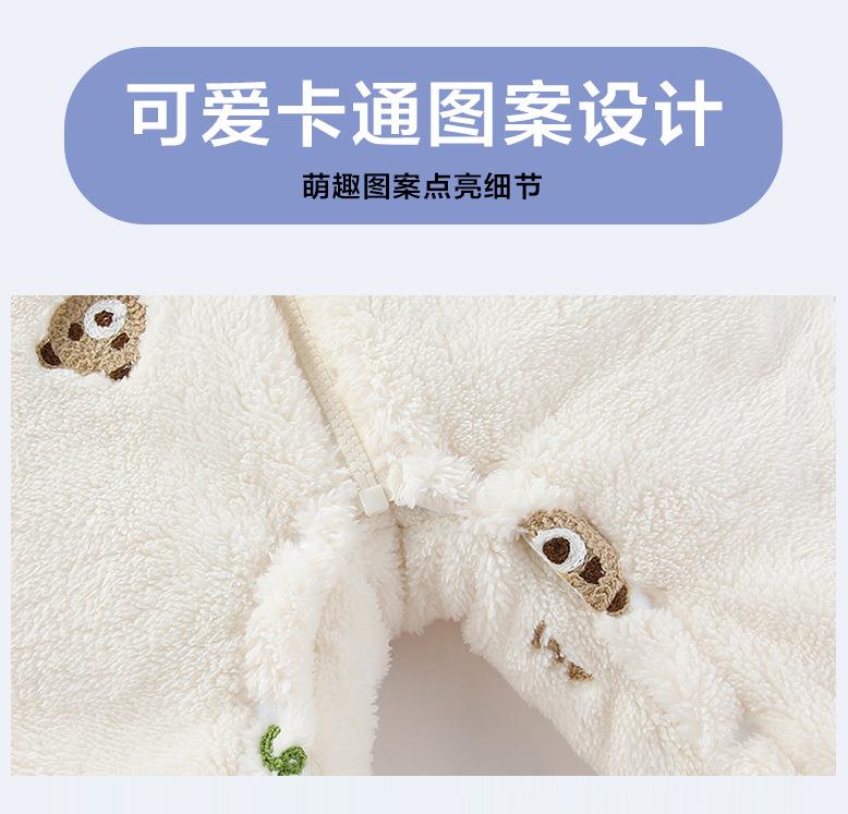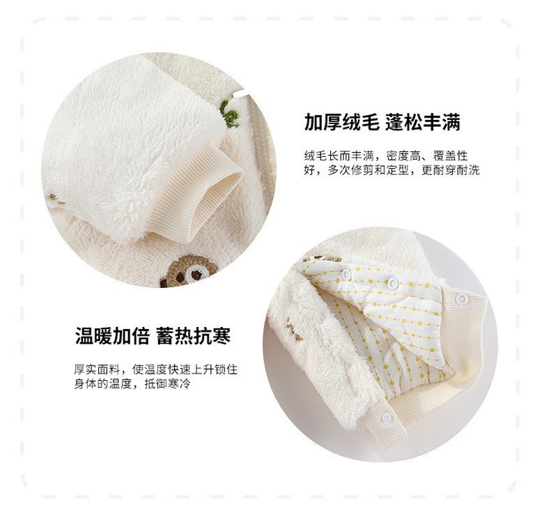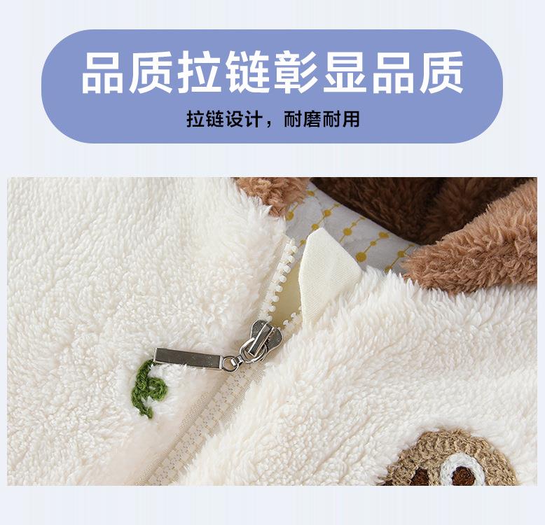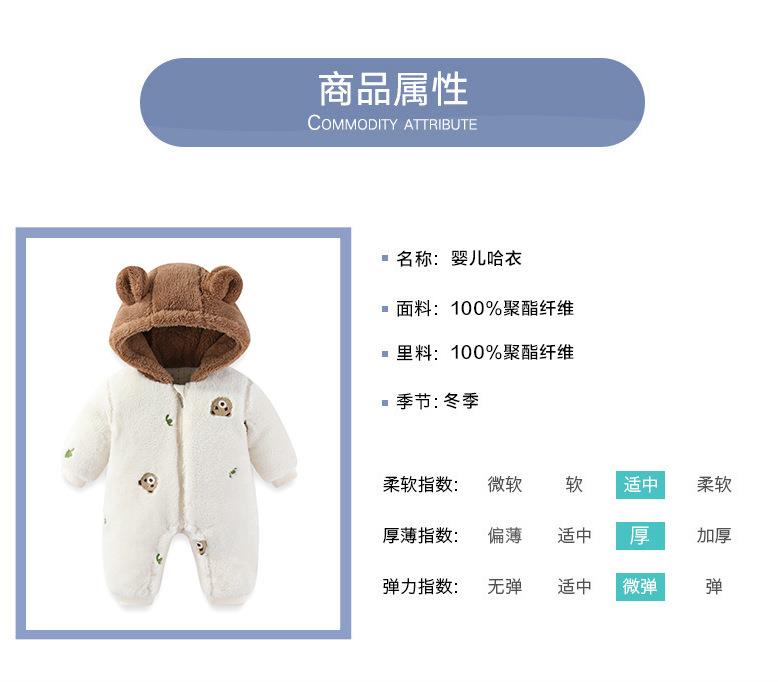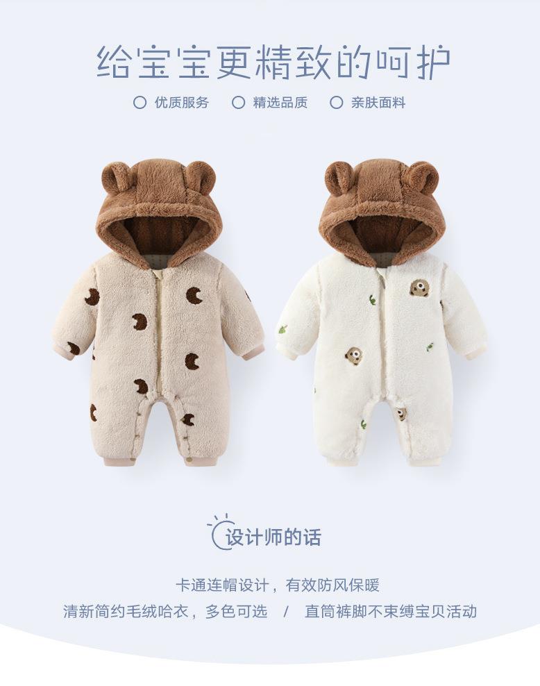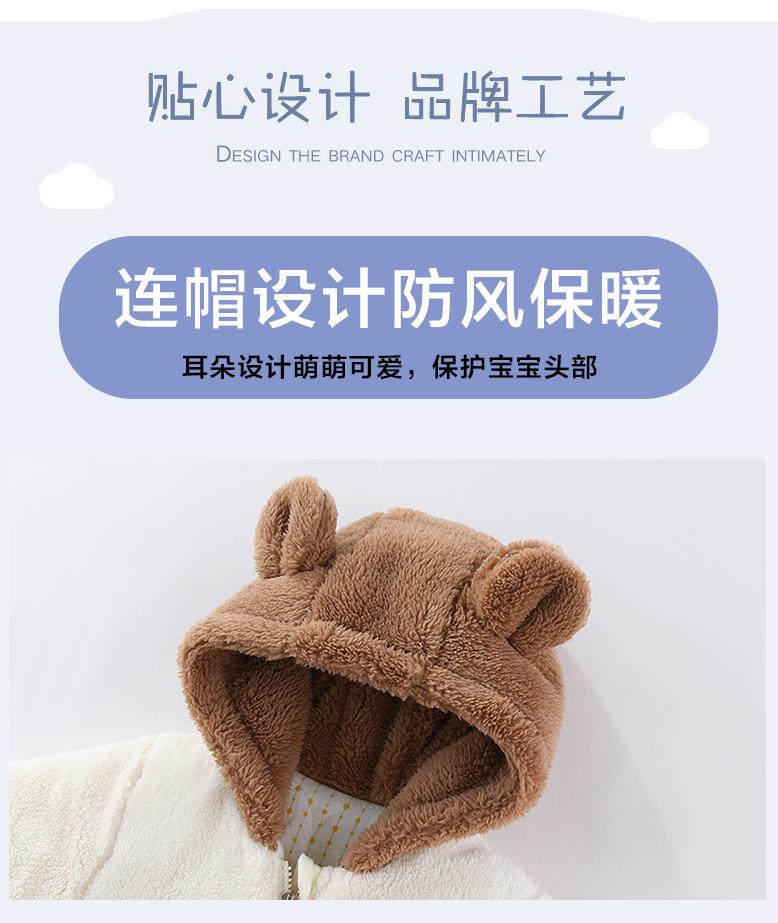 新品冬季婴儿连体衣法兰绒新生儿宝宝加厚保暖加棉拉链款外套抱衣