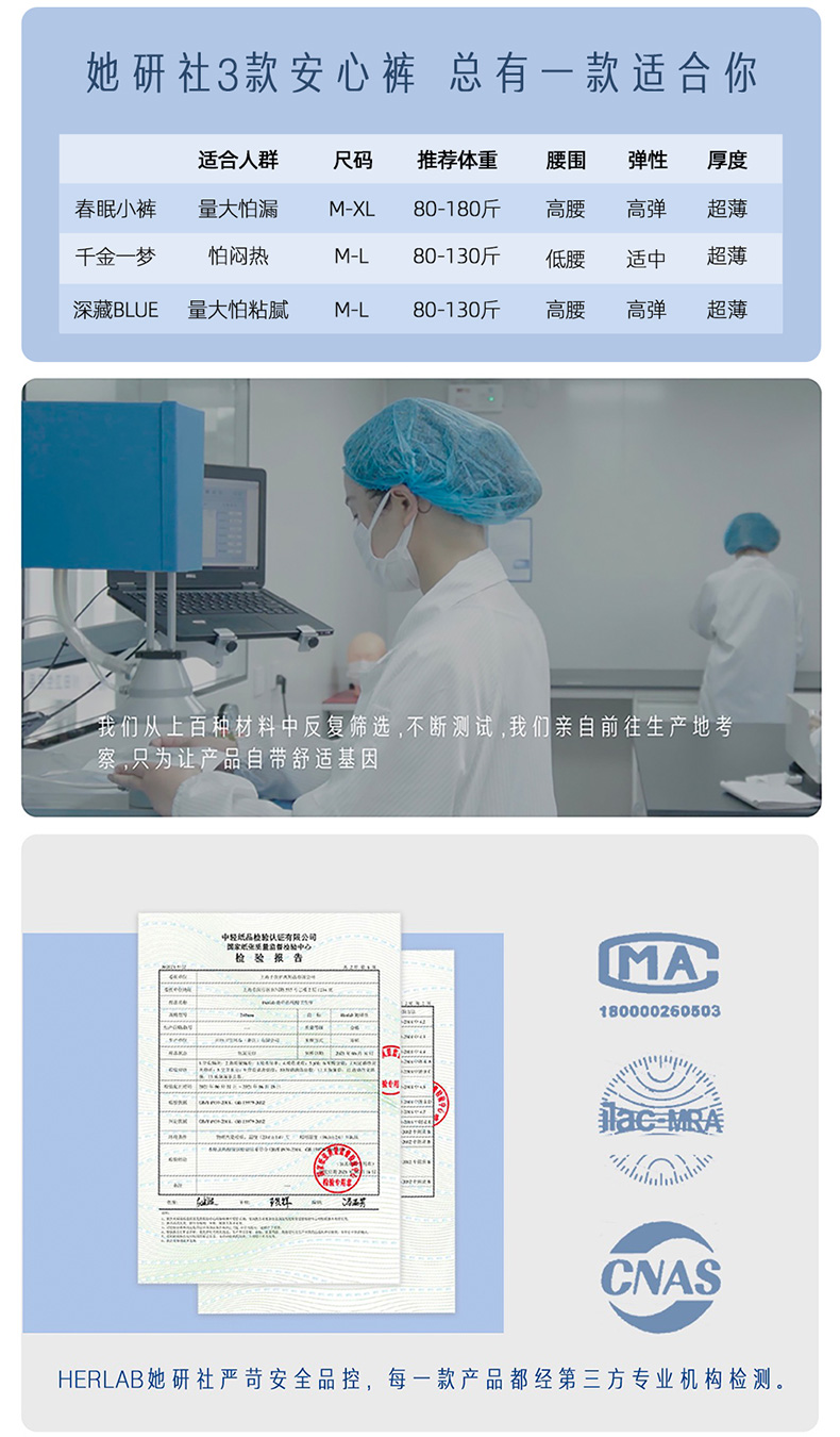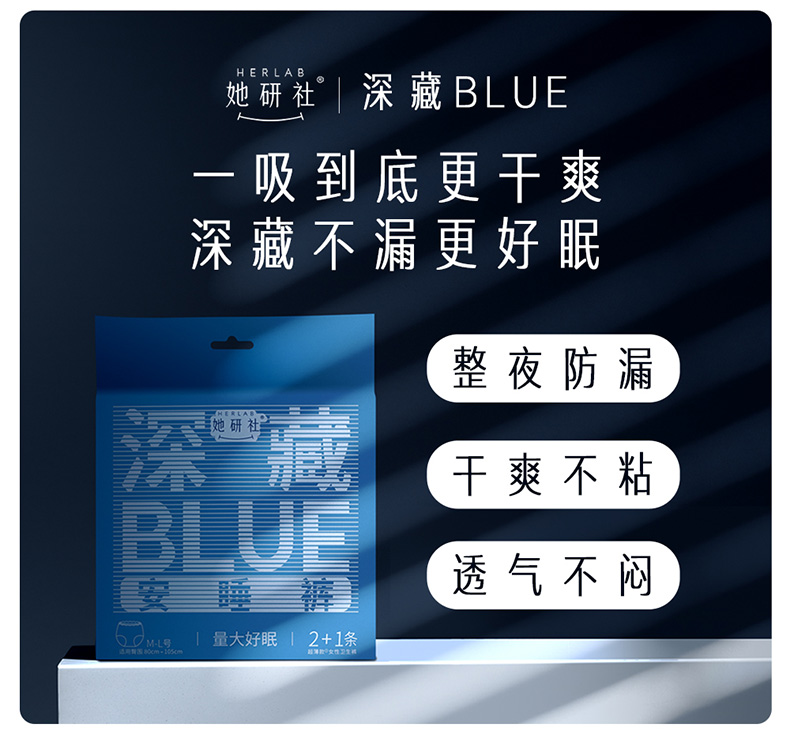 Herlab 她研社深藏BLUE 安心裤ML号2+1片安睡裤158743630