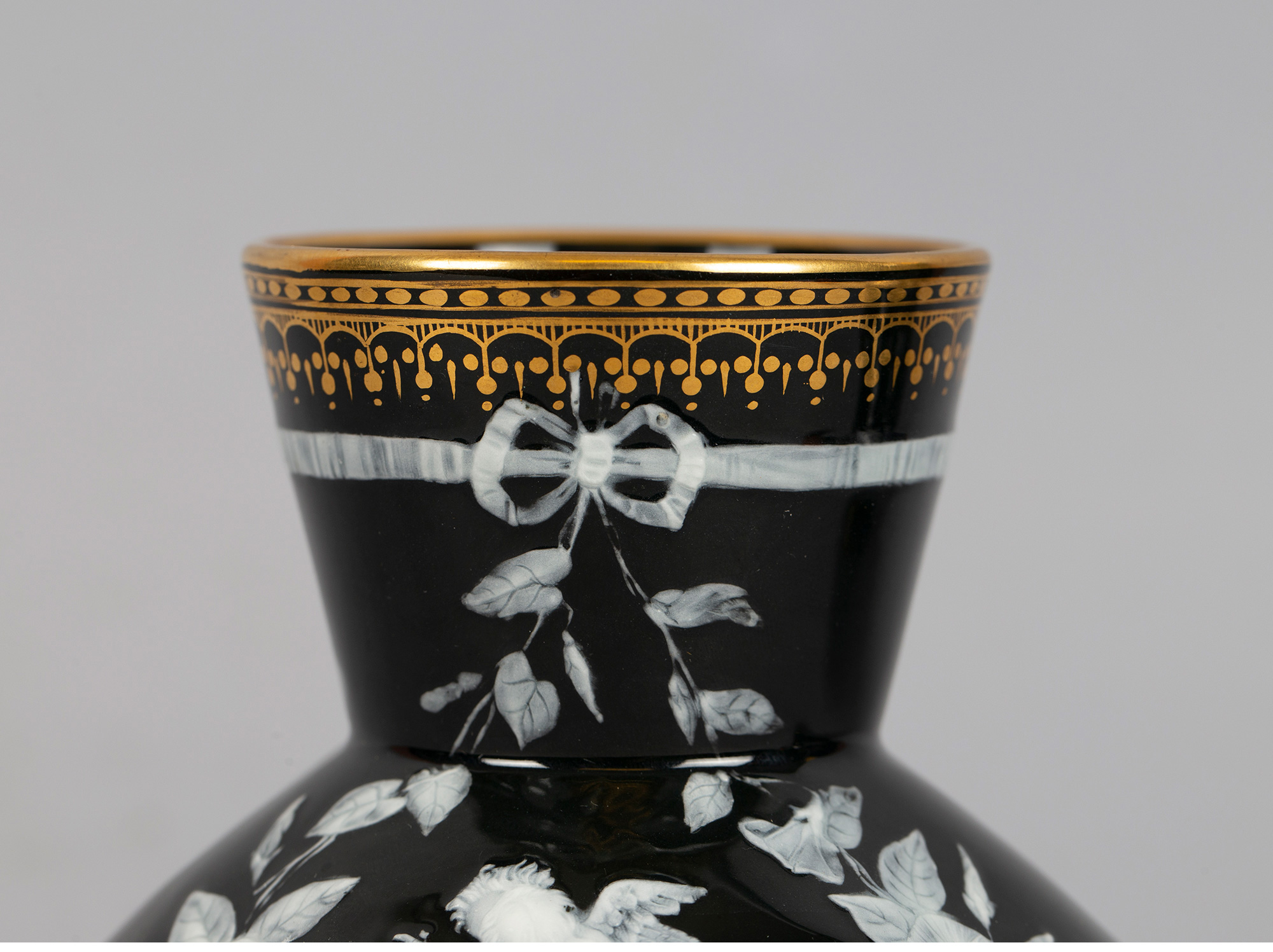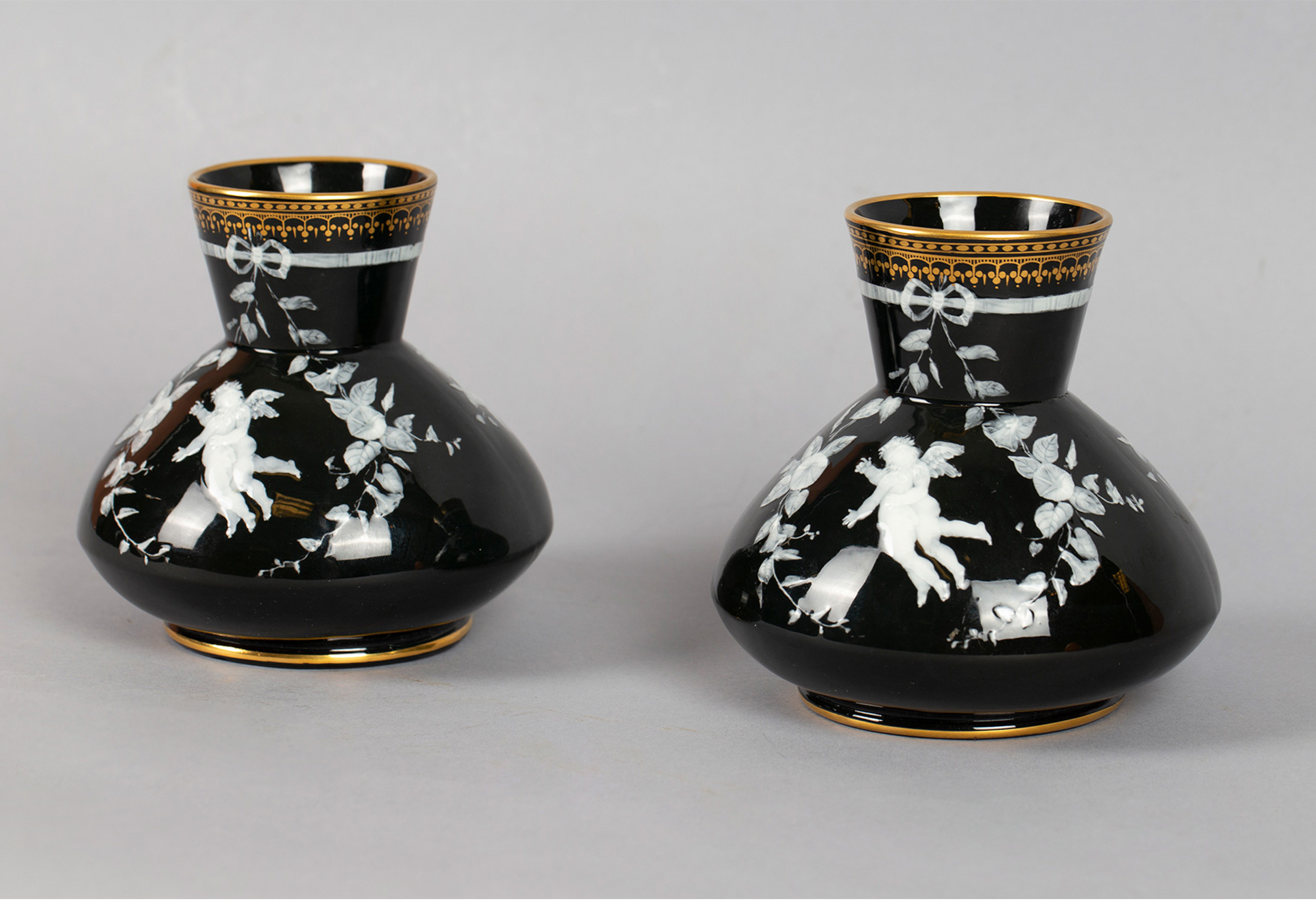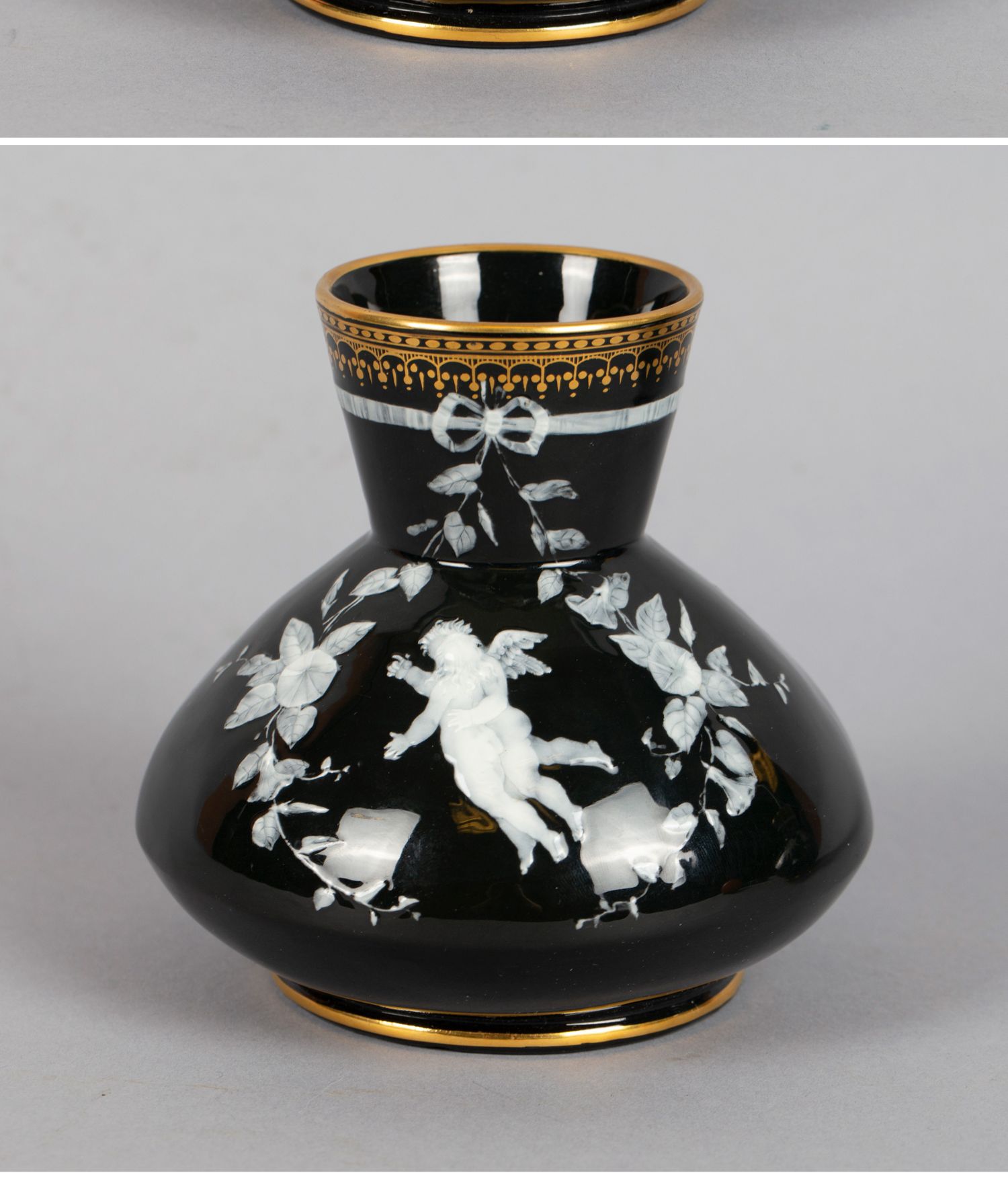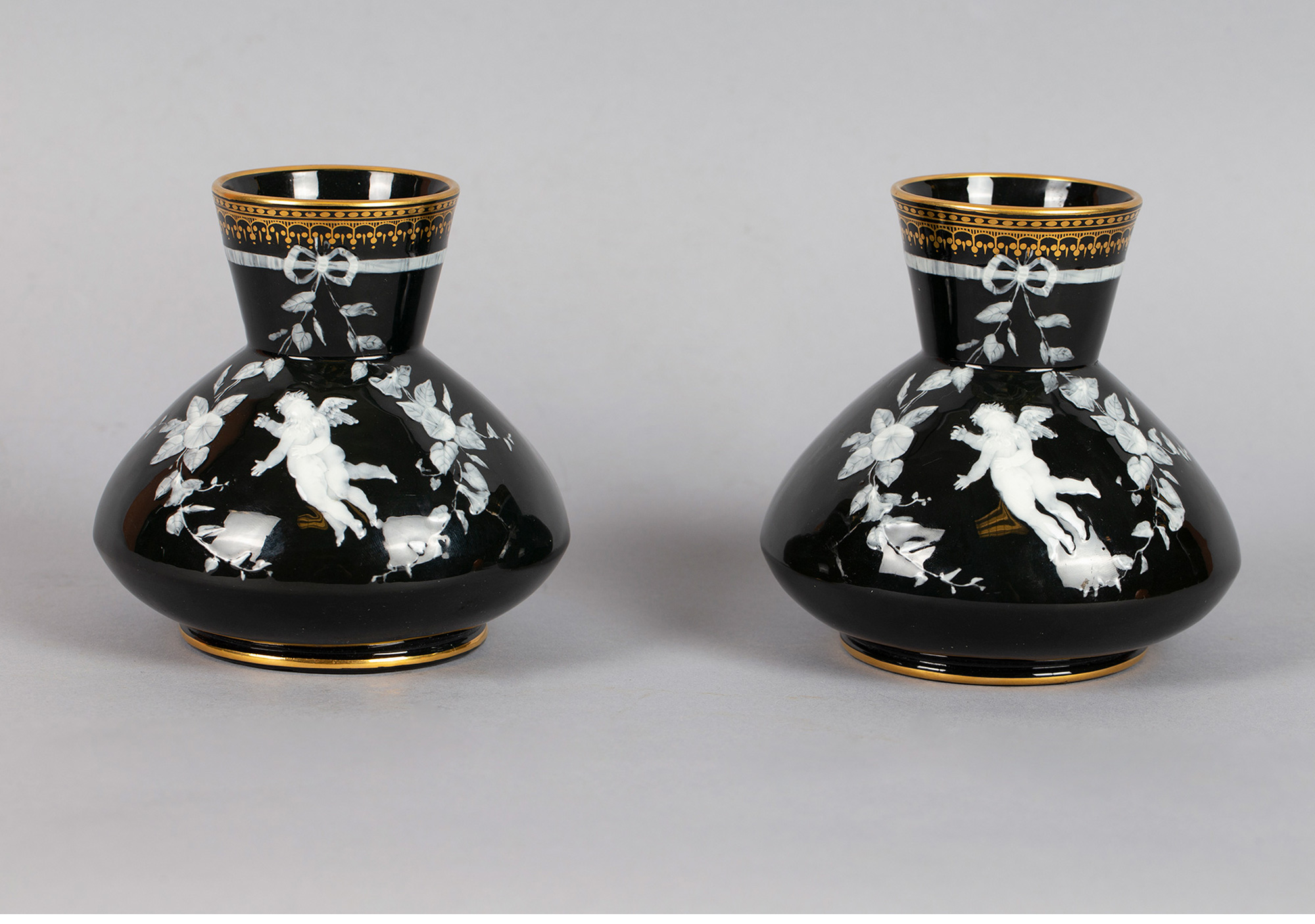 独角鹿西洋古董瓷器G.Jones花卉天使手绘描金双耳浮雕玉石瓷瓶对