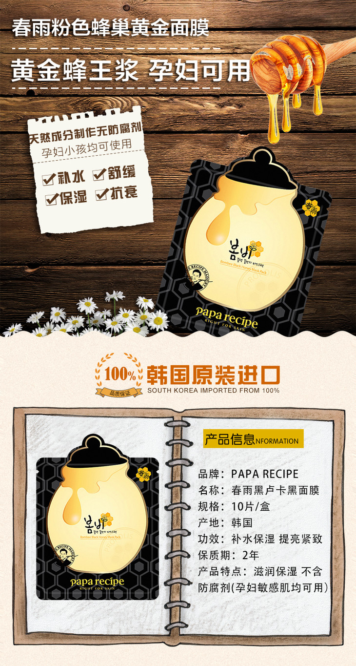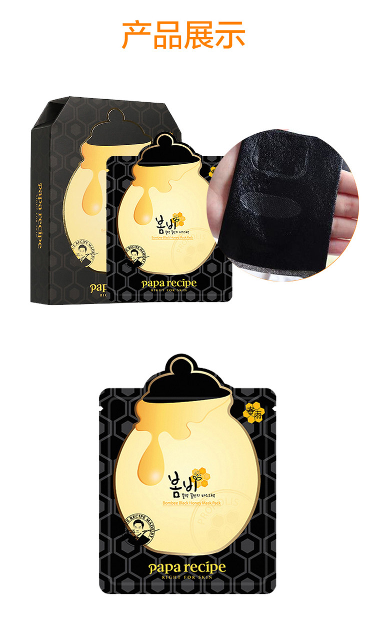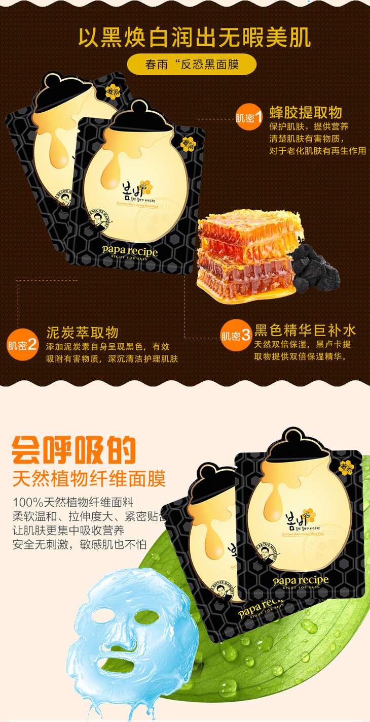 韩国原装进口 papa recipe韩国黑春雨蜂蜜面膜 黑卢卡蜜罐蜂胶补水敏感10片装
