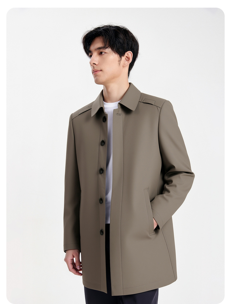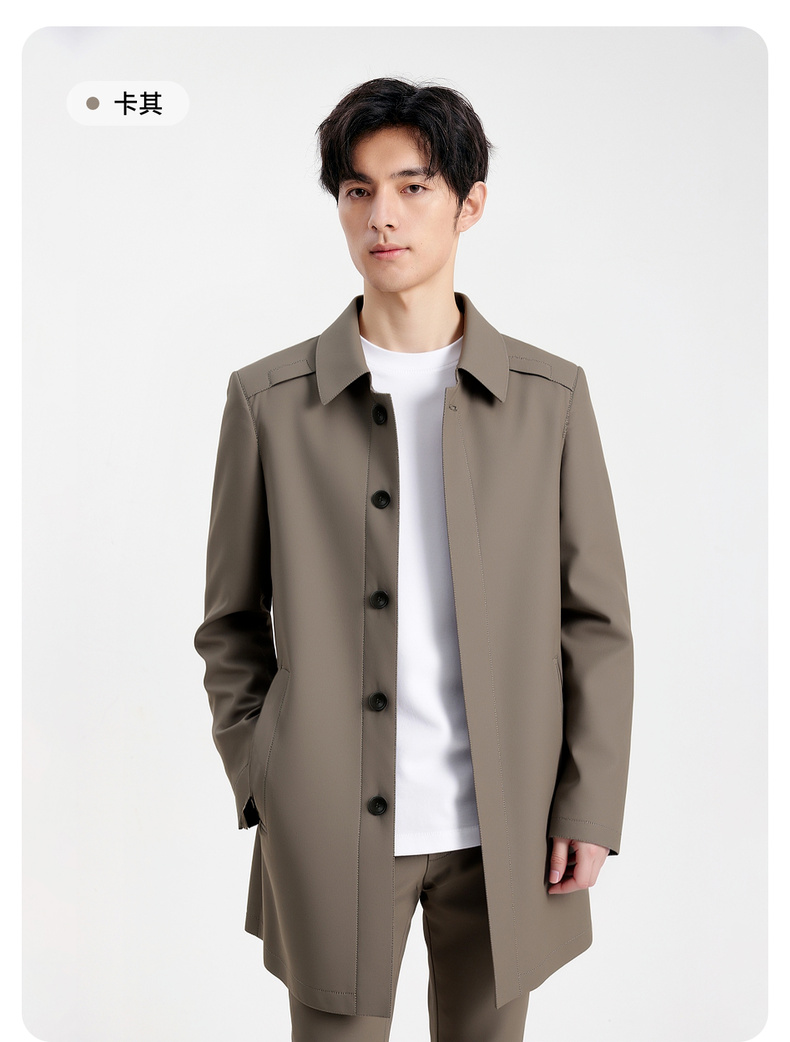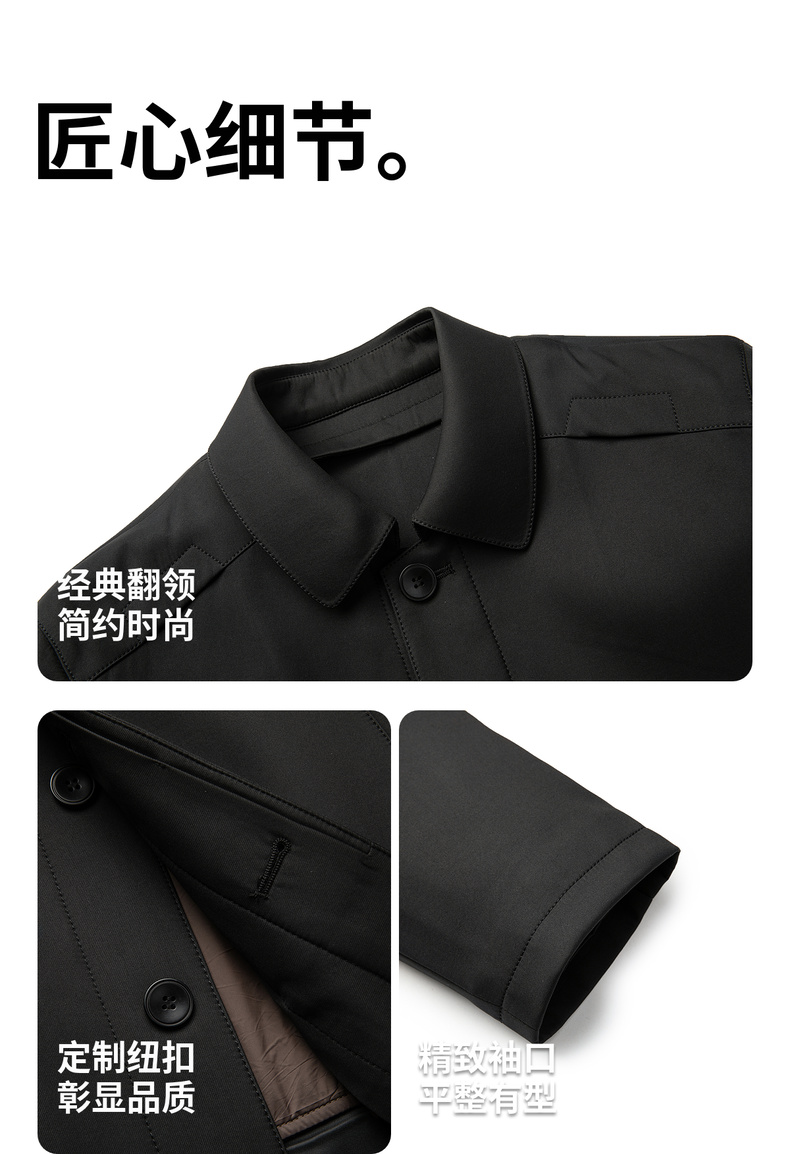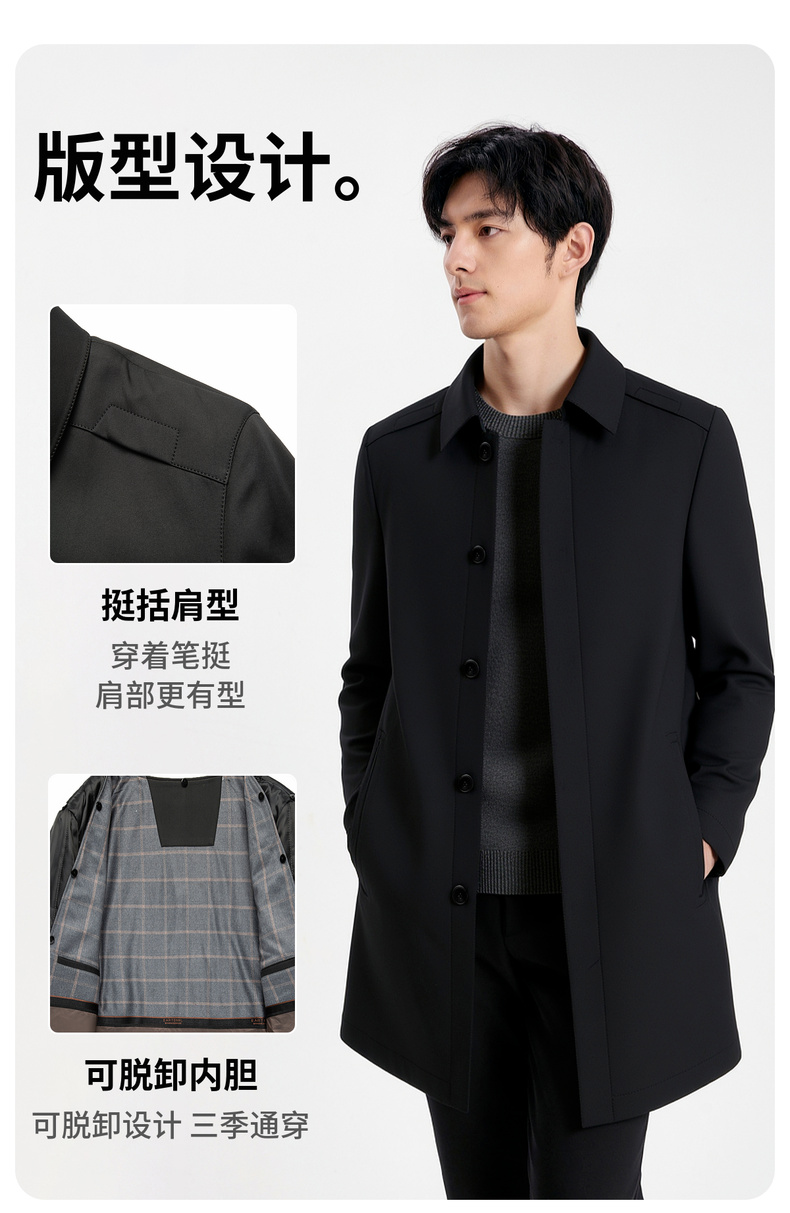 圣得西男士可拆卸内胆夹棉中长夹克2025秋季新款扛皱易打理外套