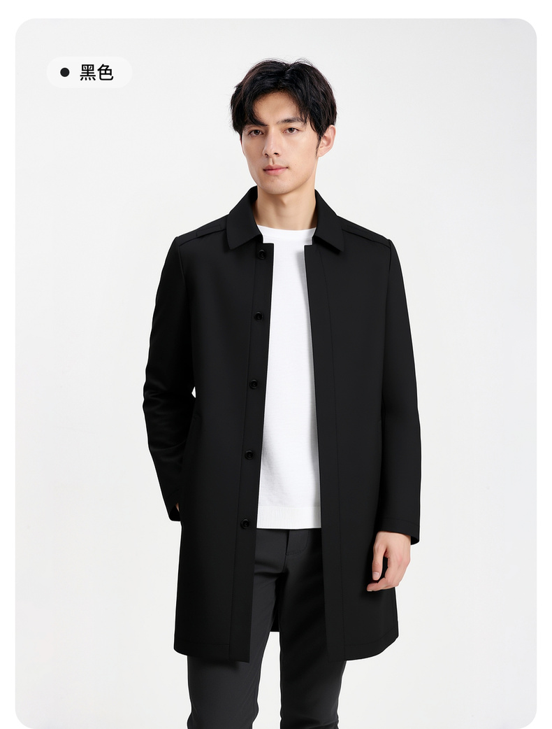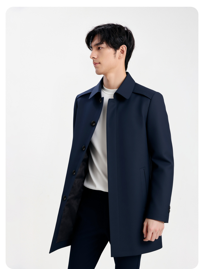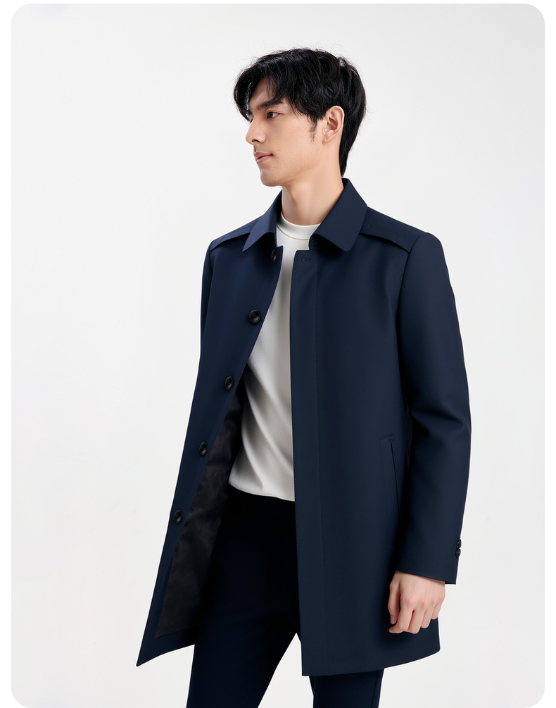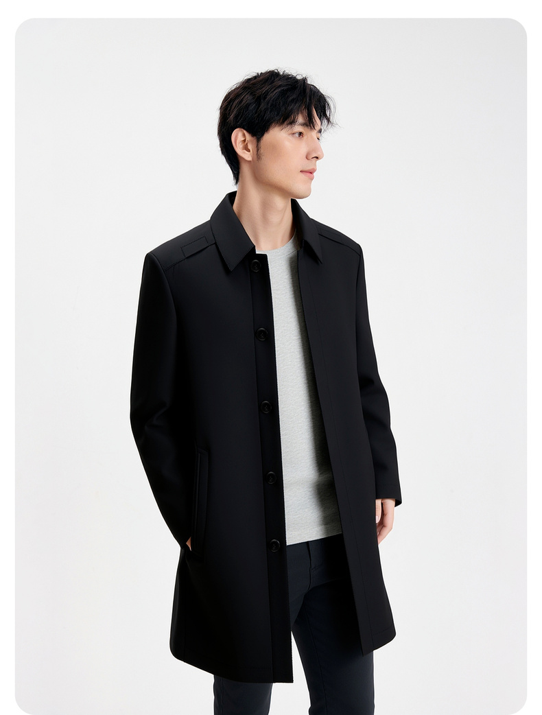 圣得西男士可拆卸内胆夹棉中长夹克2025秋季新款扛皱易打理外套