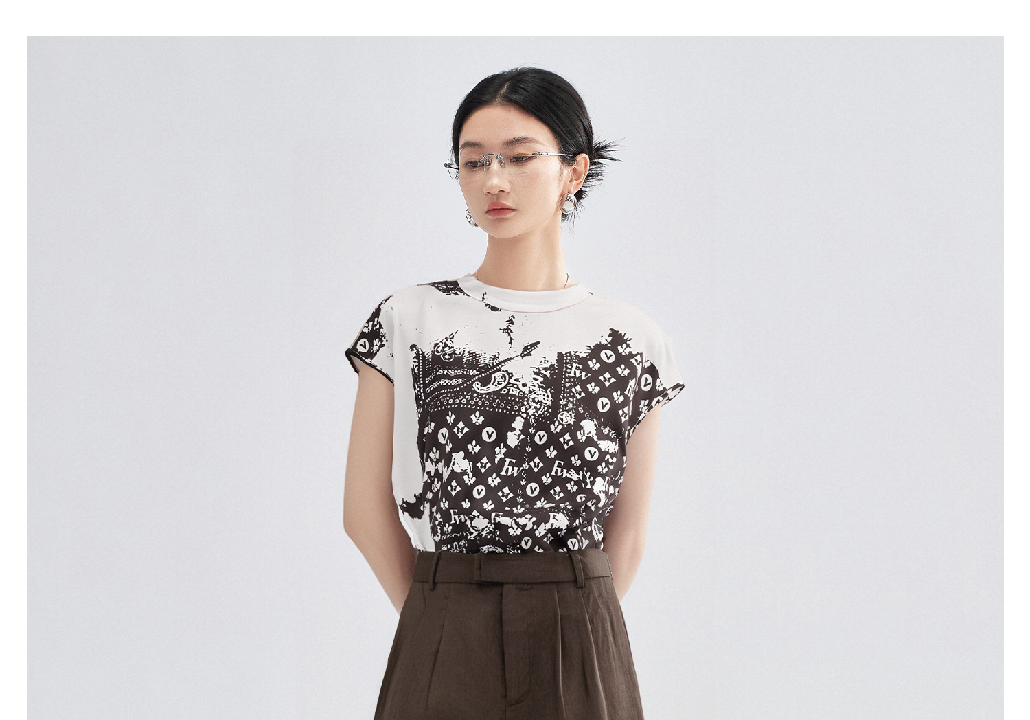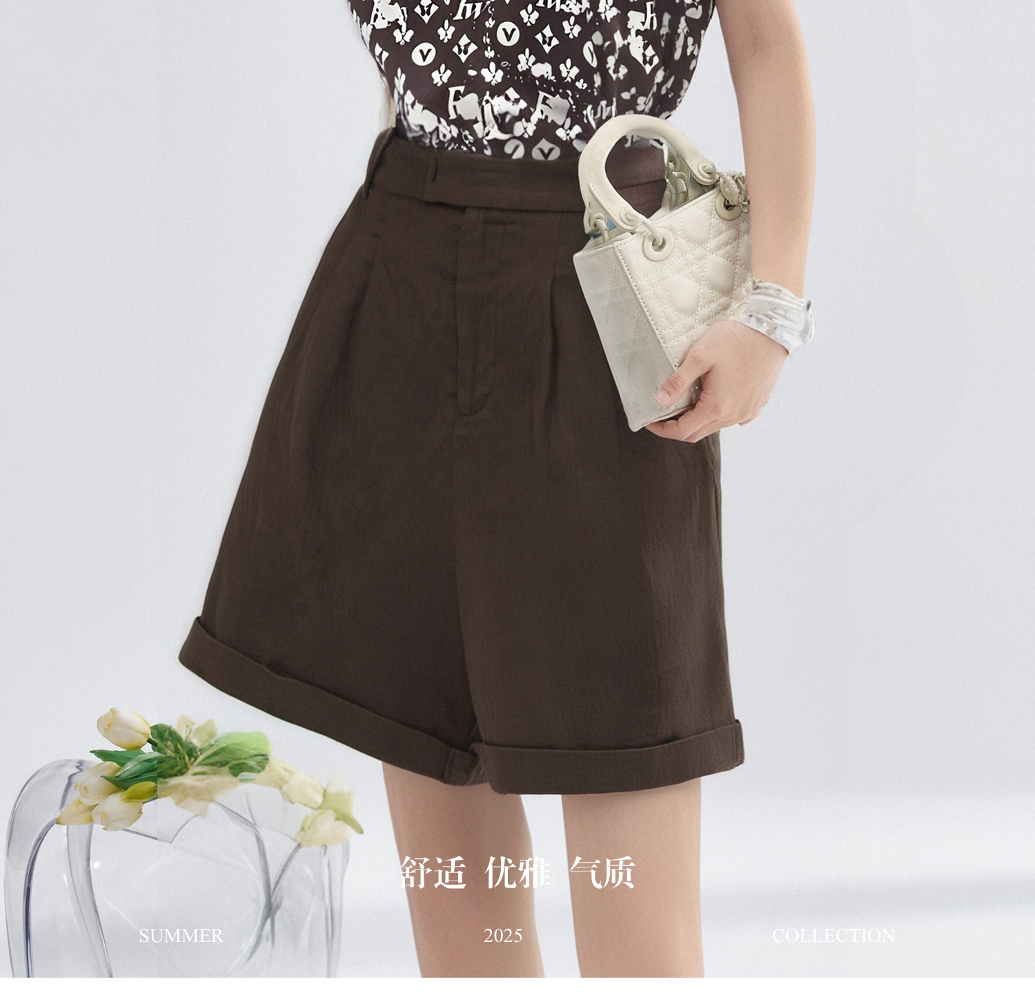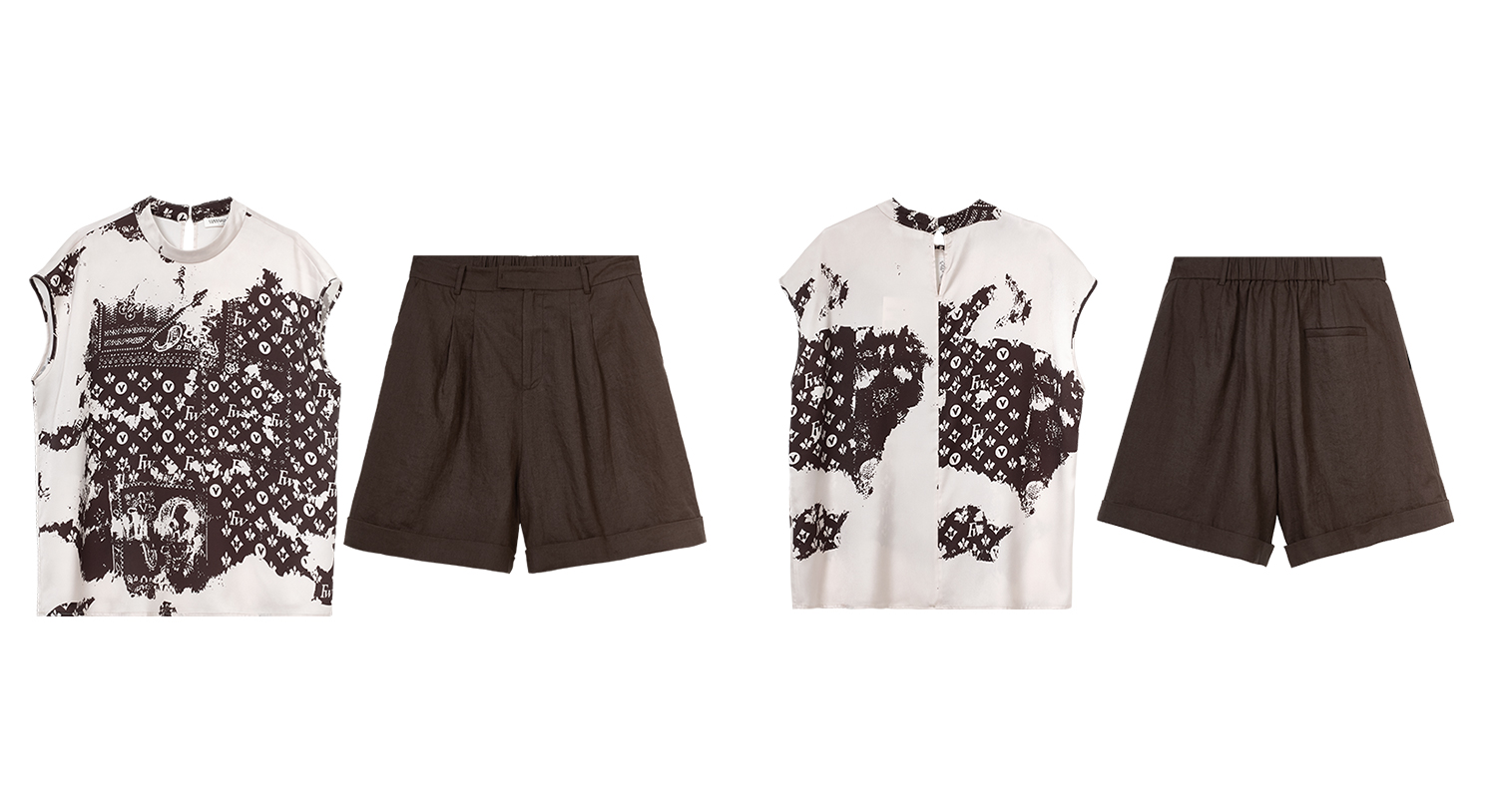 【小众印花衬衫亚麻短款两件套】女夏季高级感显瘦休闲套装3999